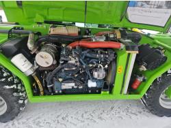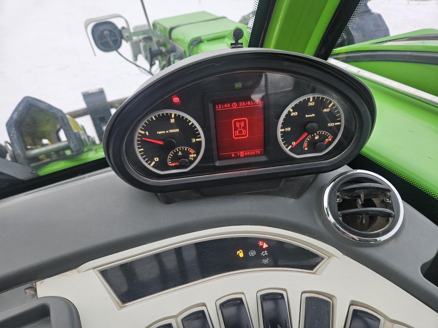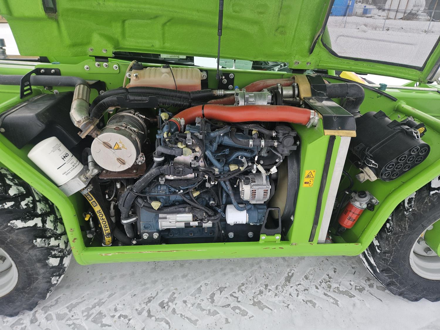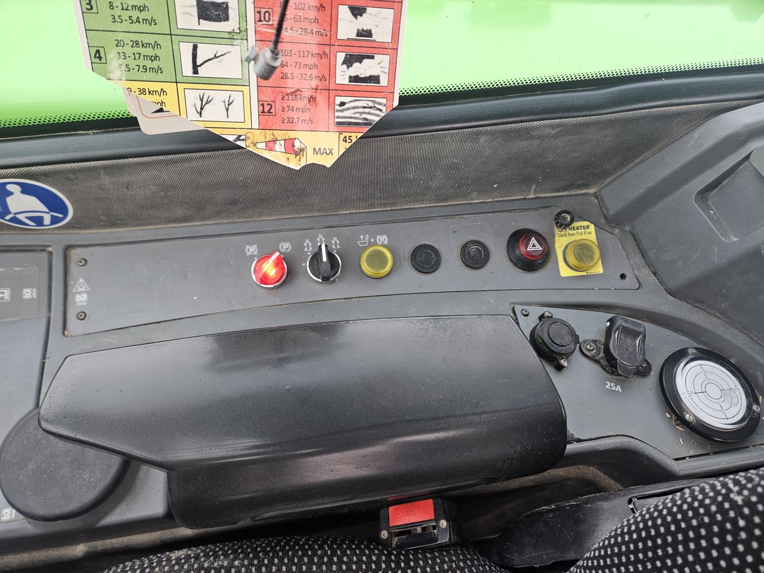 19 ft reach, Enclosed cab, A/C, air ride seat, 2 speed hydro transmission, 3 way steering, Kubota Diesel engine, 47 inch pallet forks, 1 front auxiliary hydraulics, 12.0/75-18 tires