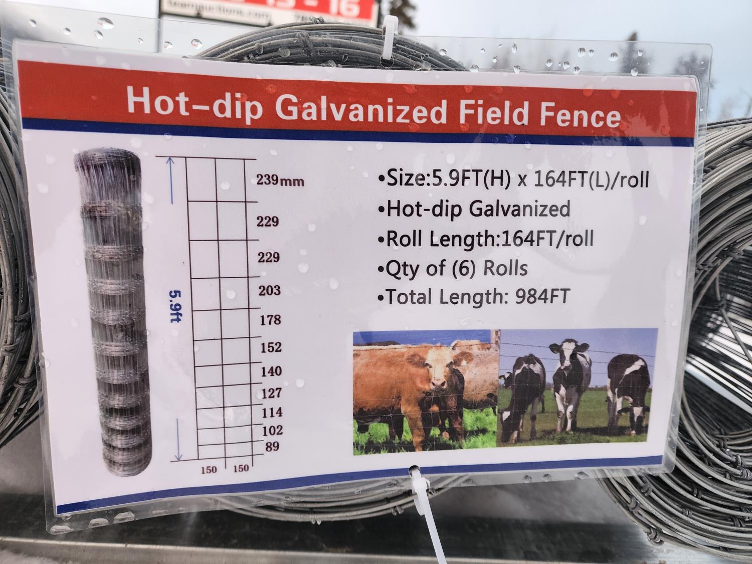 48 (8) 5.9 Ft Rolls of Hot Dip Galvanized Field Fence (Unused)