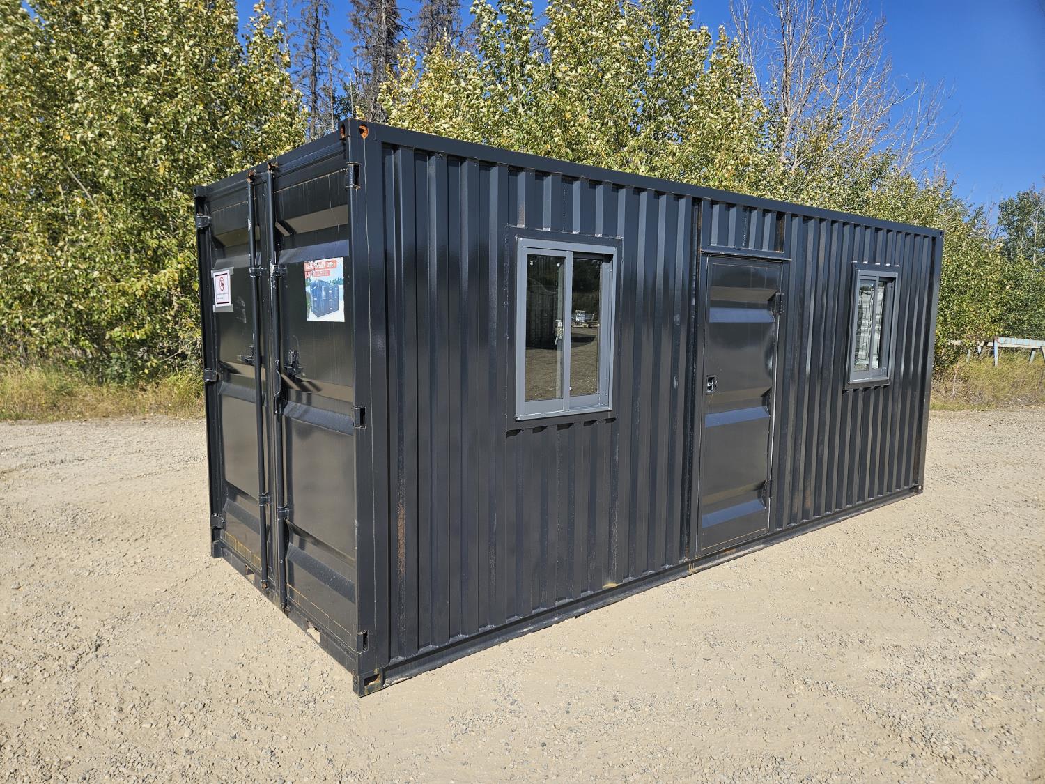 19.5 ft x 7.4 ft x 8 ft, bi-folding doors, man door, windows, one time use