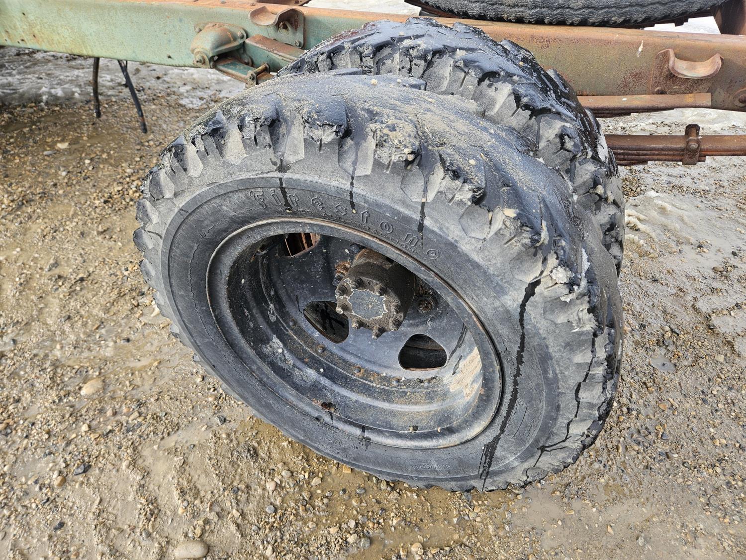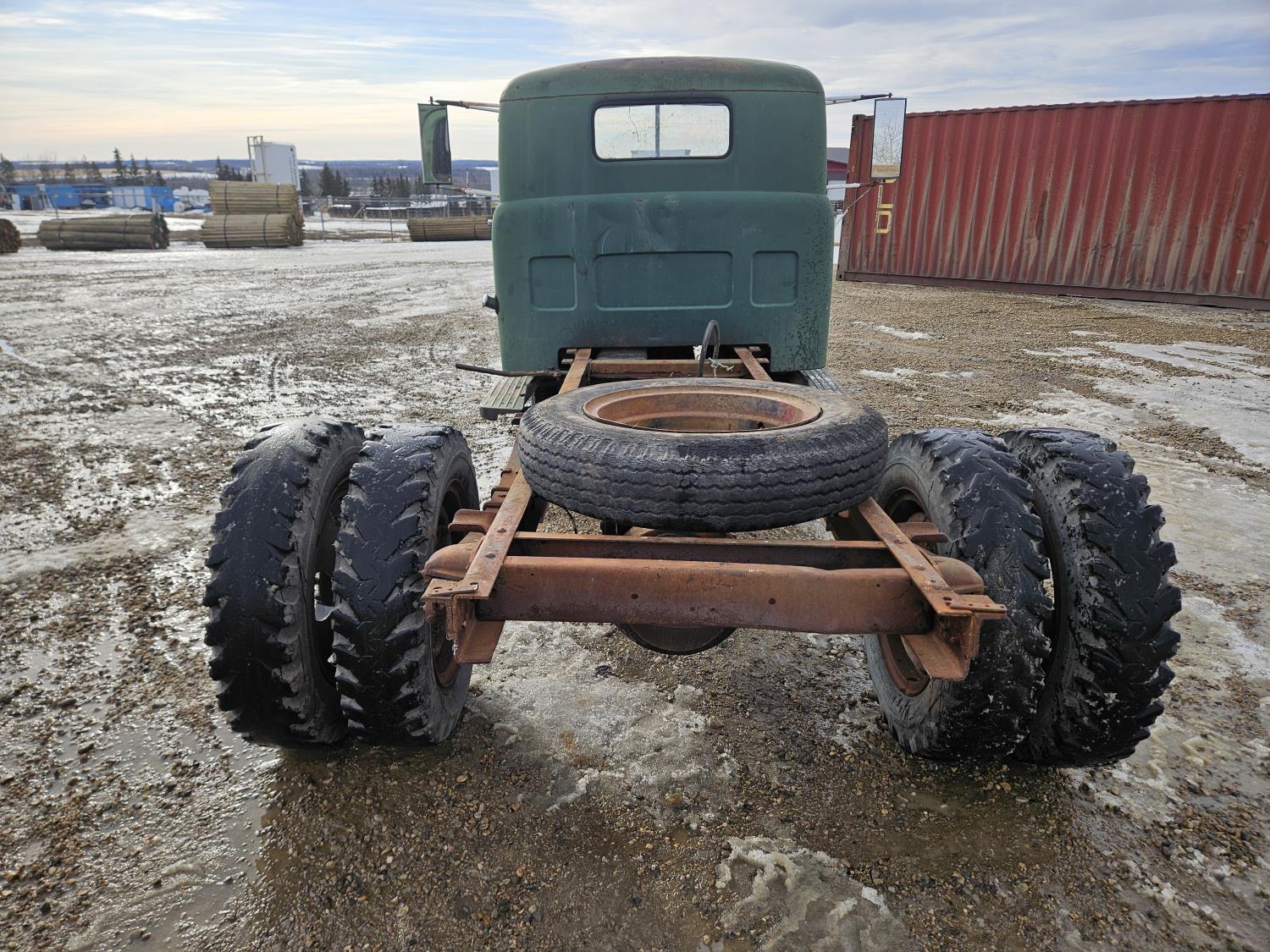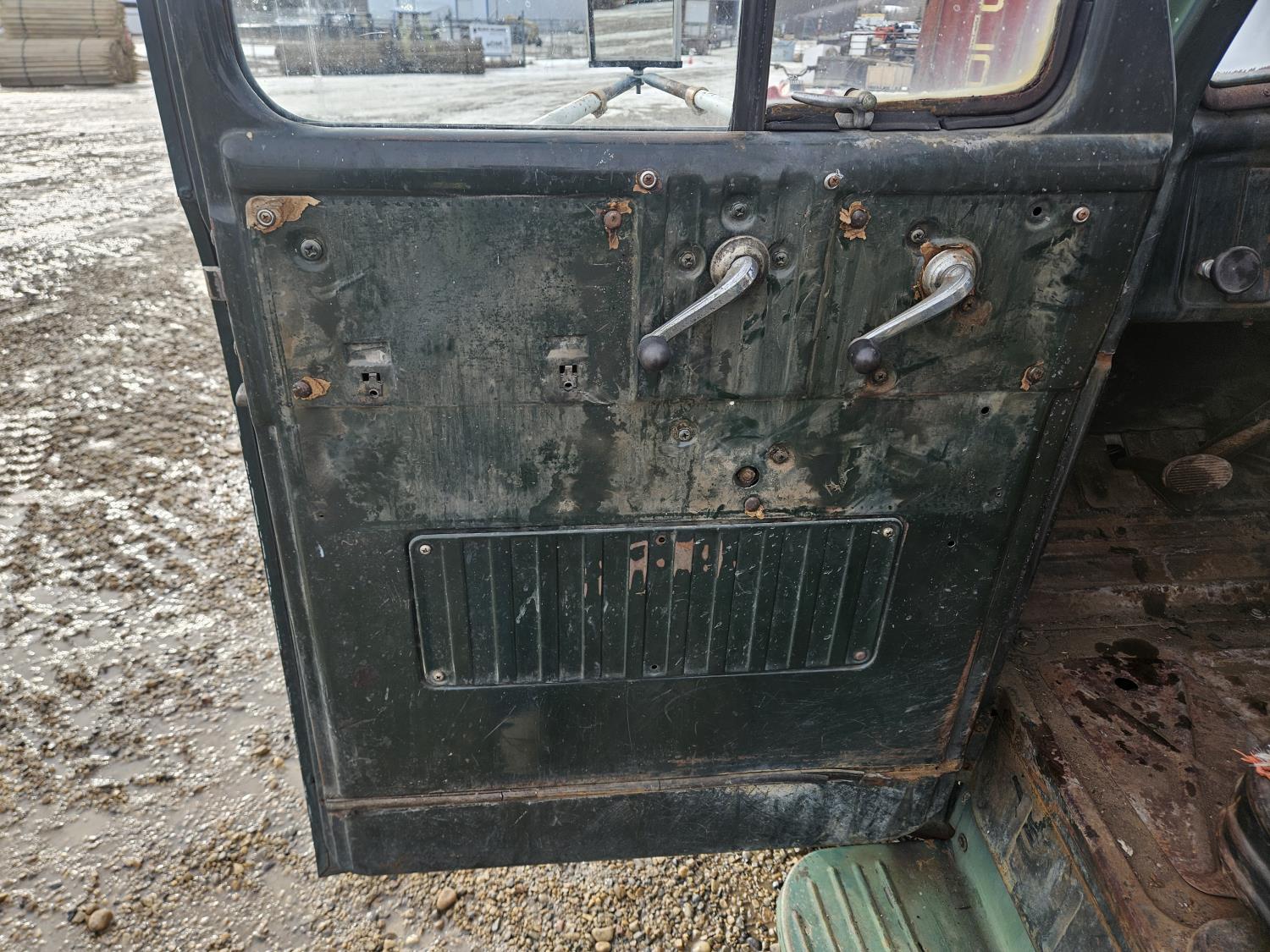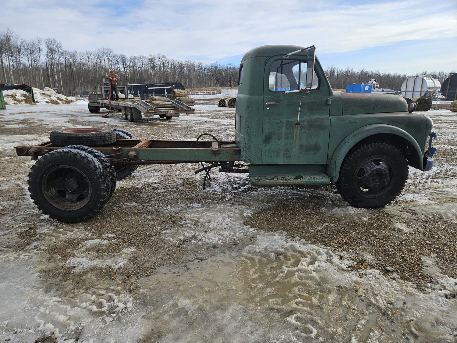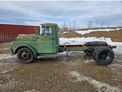 Flat Head , 6 cylinder, gas, 4 speed manual transmission, 2nd owner truck, runs and drives, originally had a grain box, hydraulics still attached, 7.50-20 tires