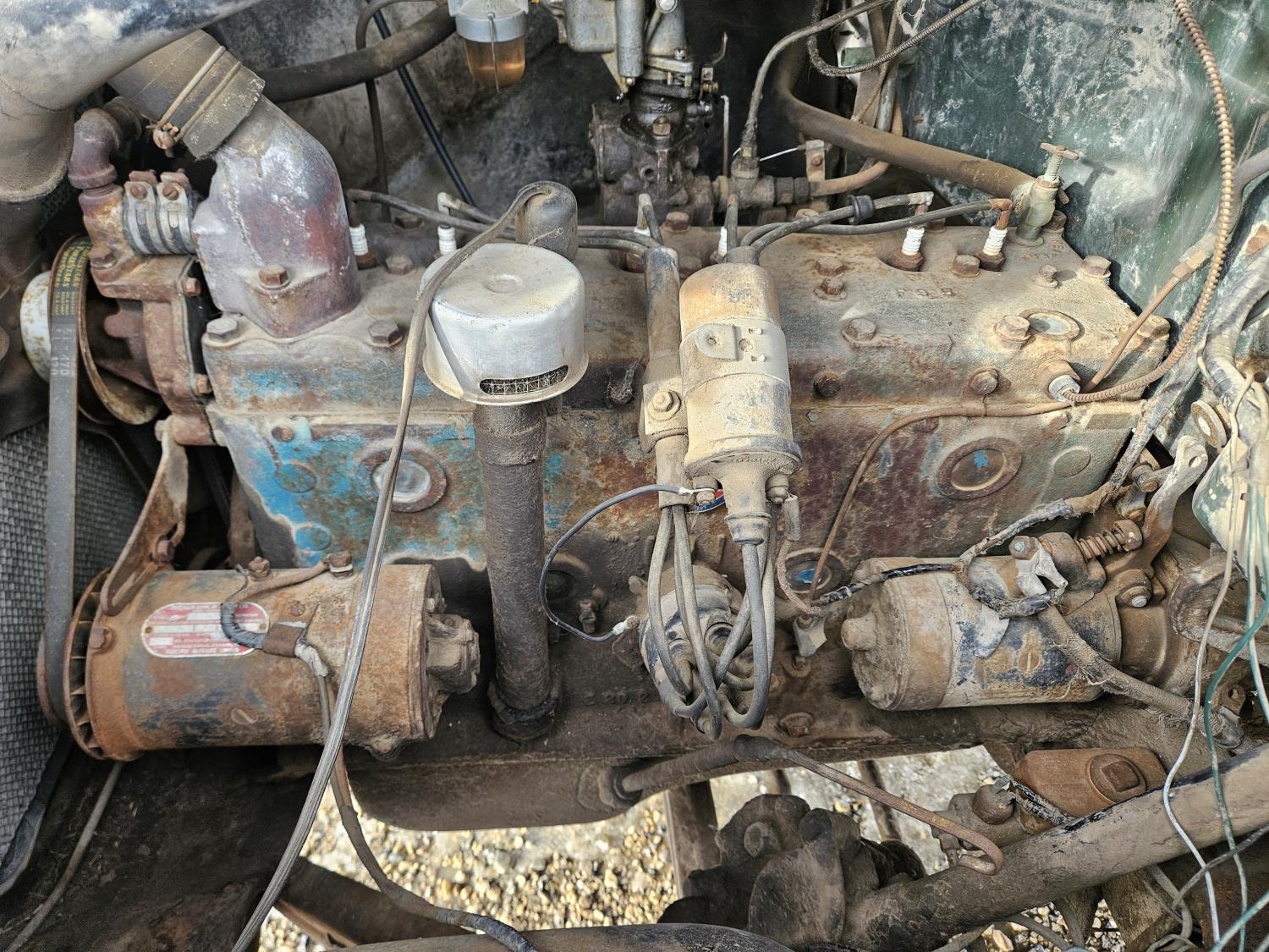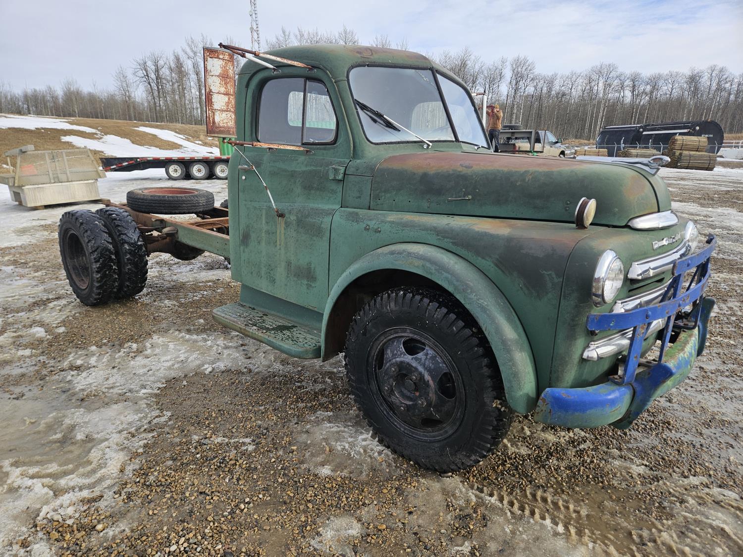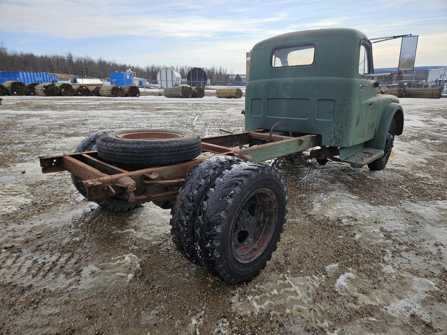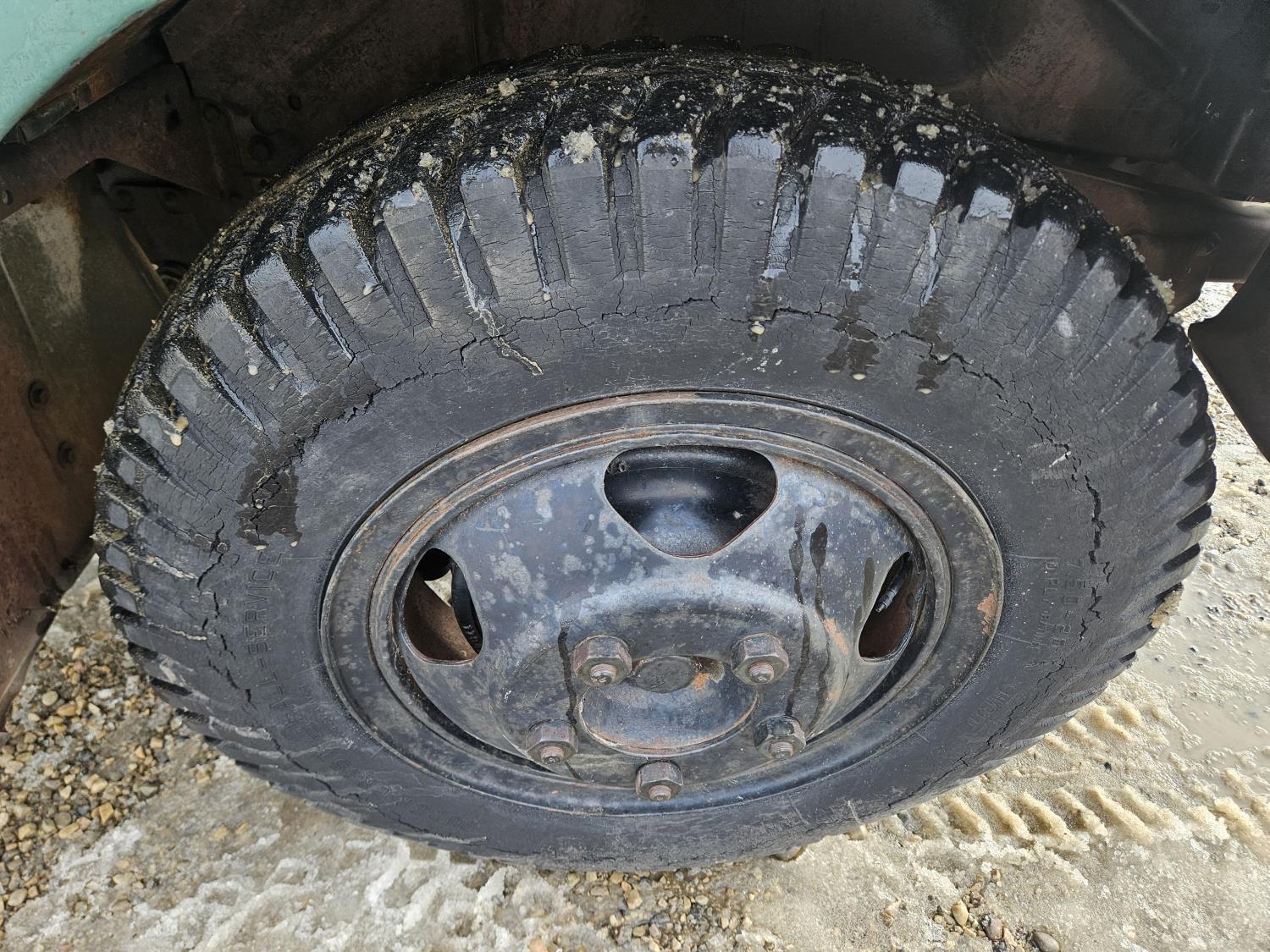 Flat Head , 6 cylinder, gas, 4 speed manual transmission, 2nd owner truck, runs and drives, originally had a grain box, hydraulics still attached, 7.50-20 tires