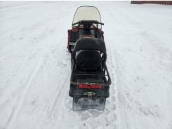 480 cc 2 cylinder 2 stroke Fan cooled engine, electric start, reverse, windshield, hand and thumb warmers, 151 inch long track, 15 inch wide track, rear tow hitch, 2 up seat, recent engine rebuild