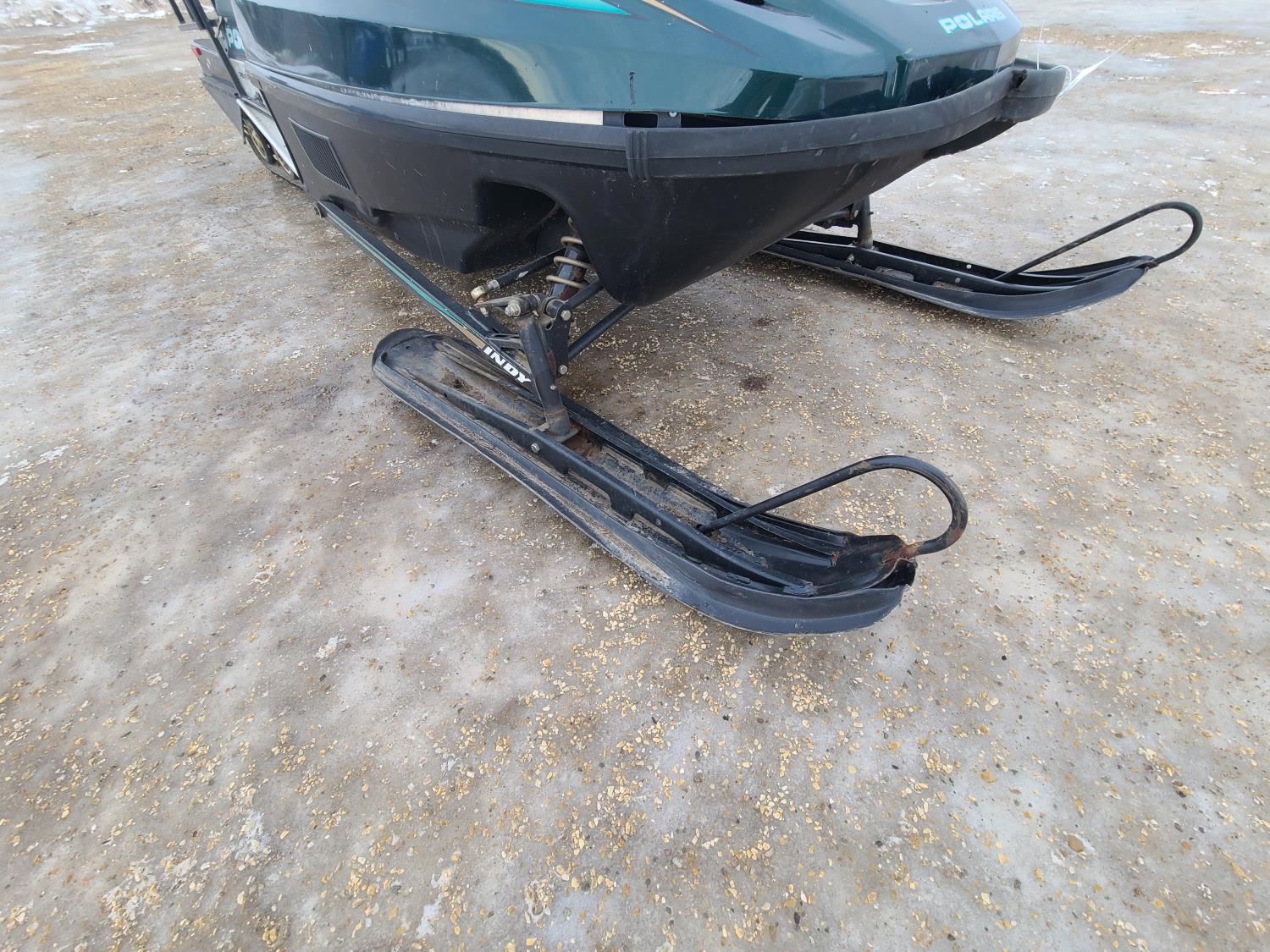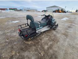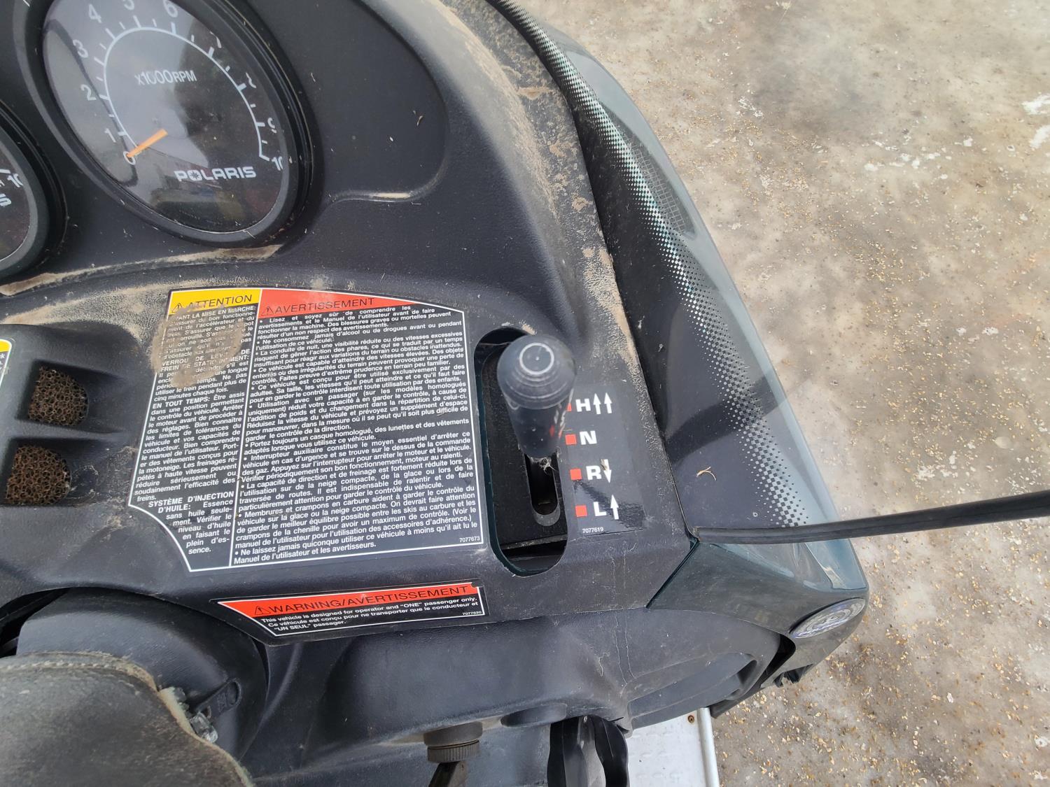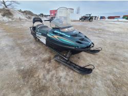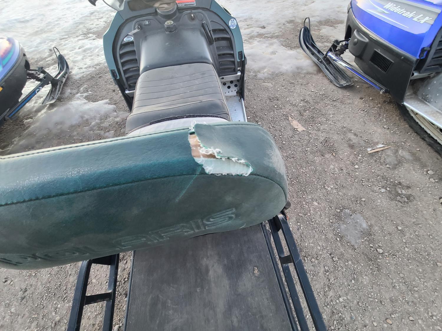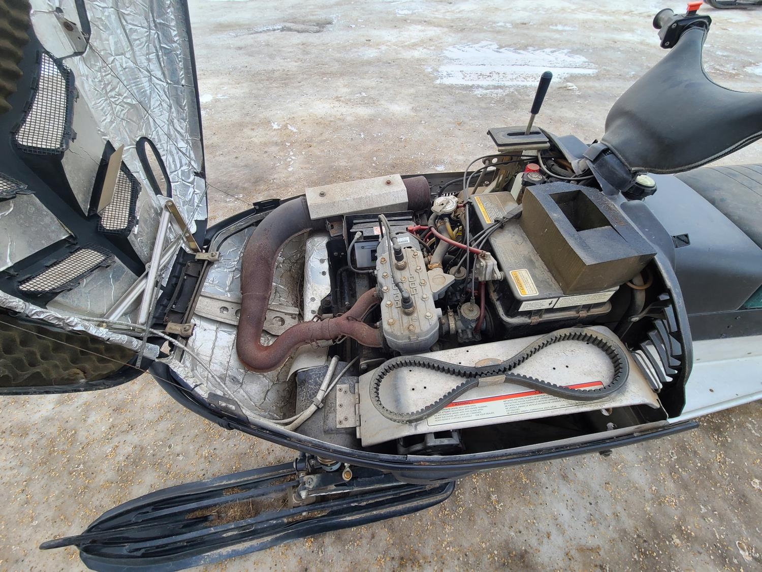 500 cc Polaris 2 cylinder 2 stroke engine, electric start, reverse, windshield, hand and thumb warmers, 2 up seat with backrest, 156 inch long track, 1 inch paddles