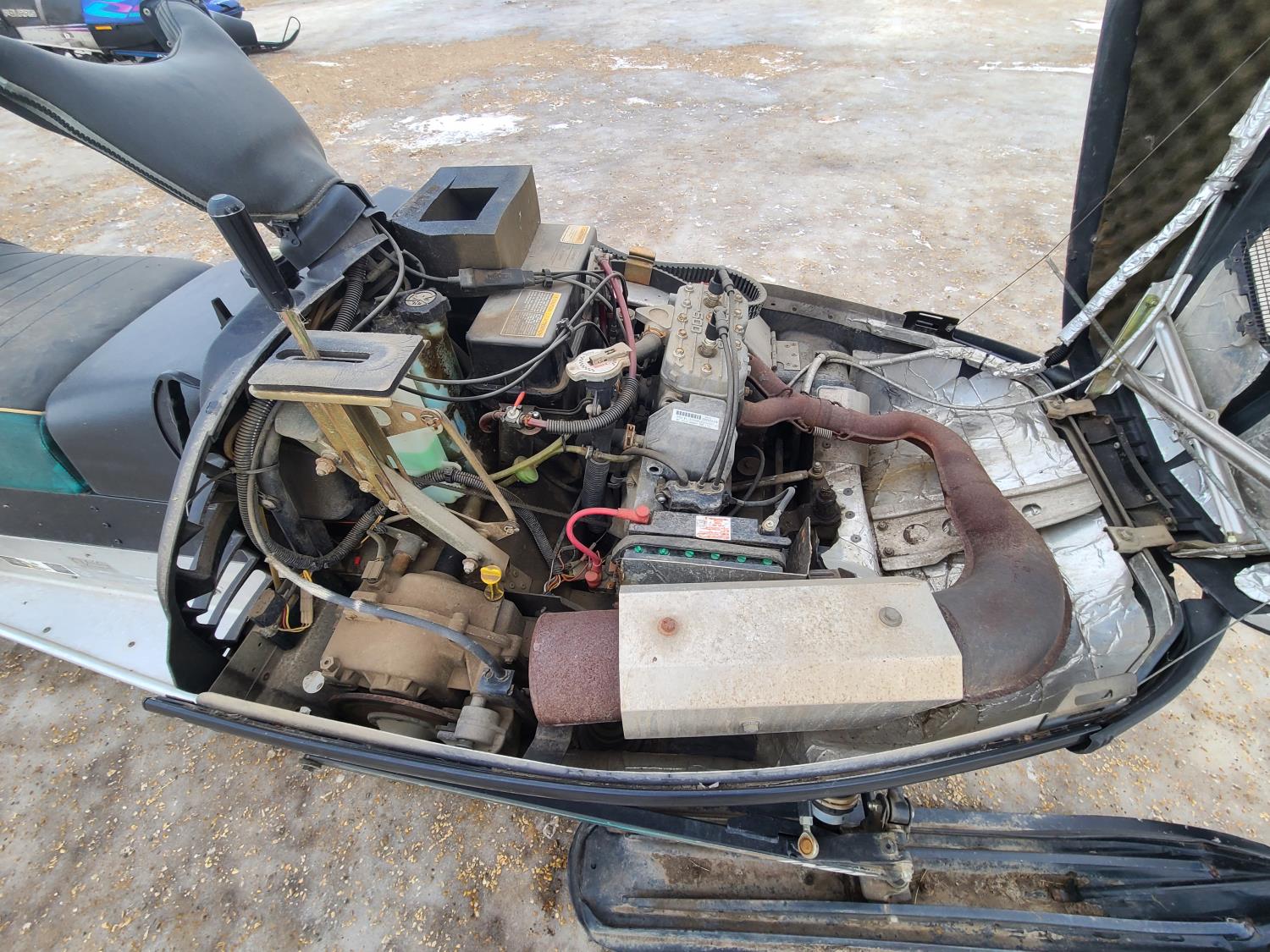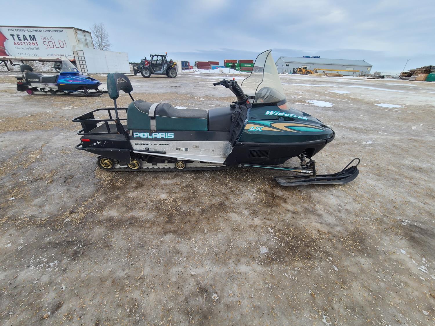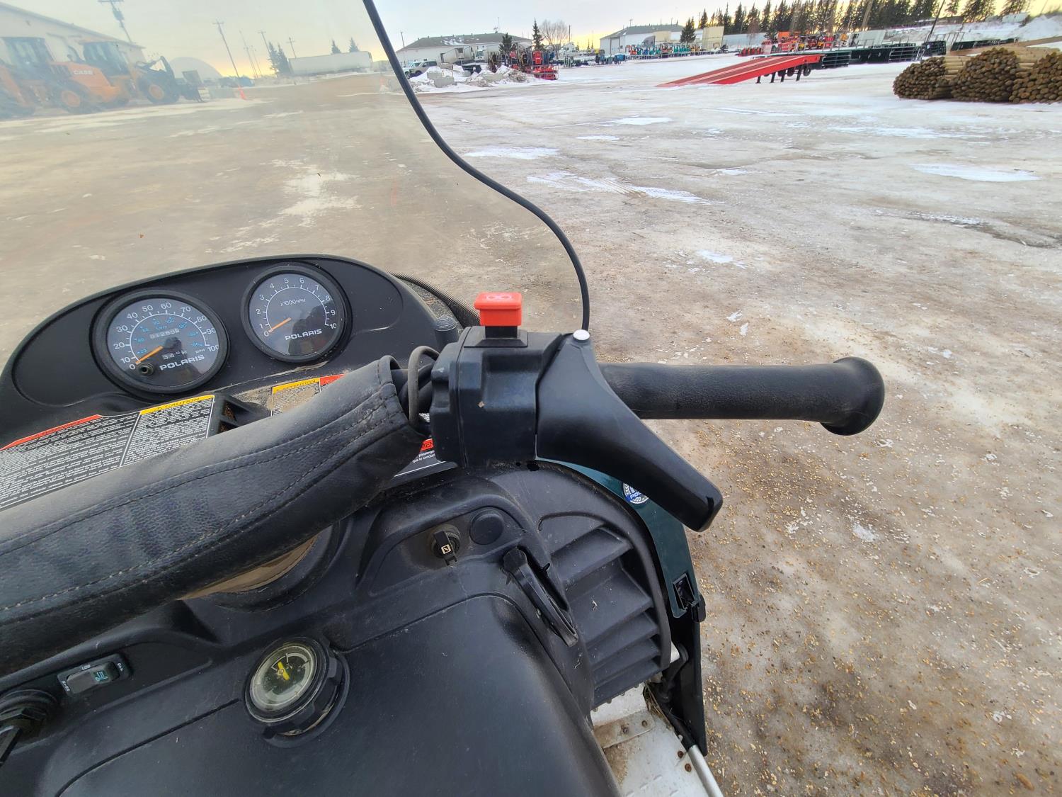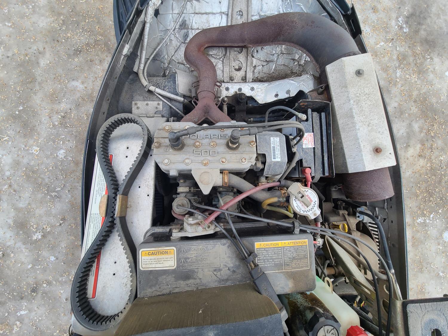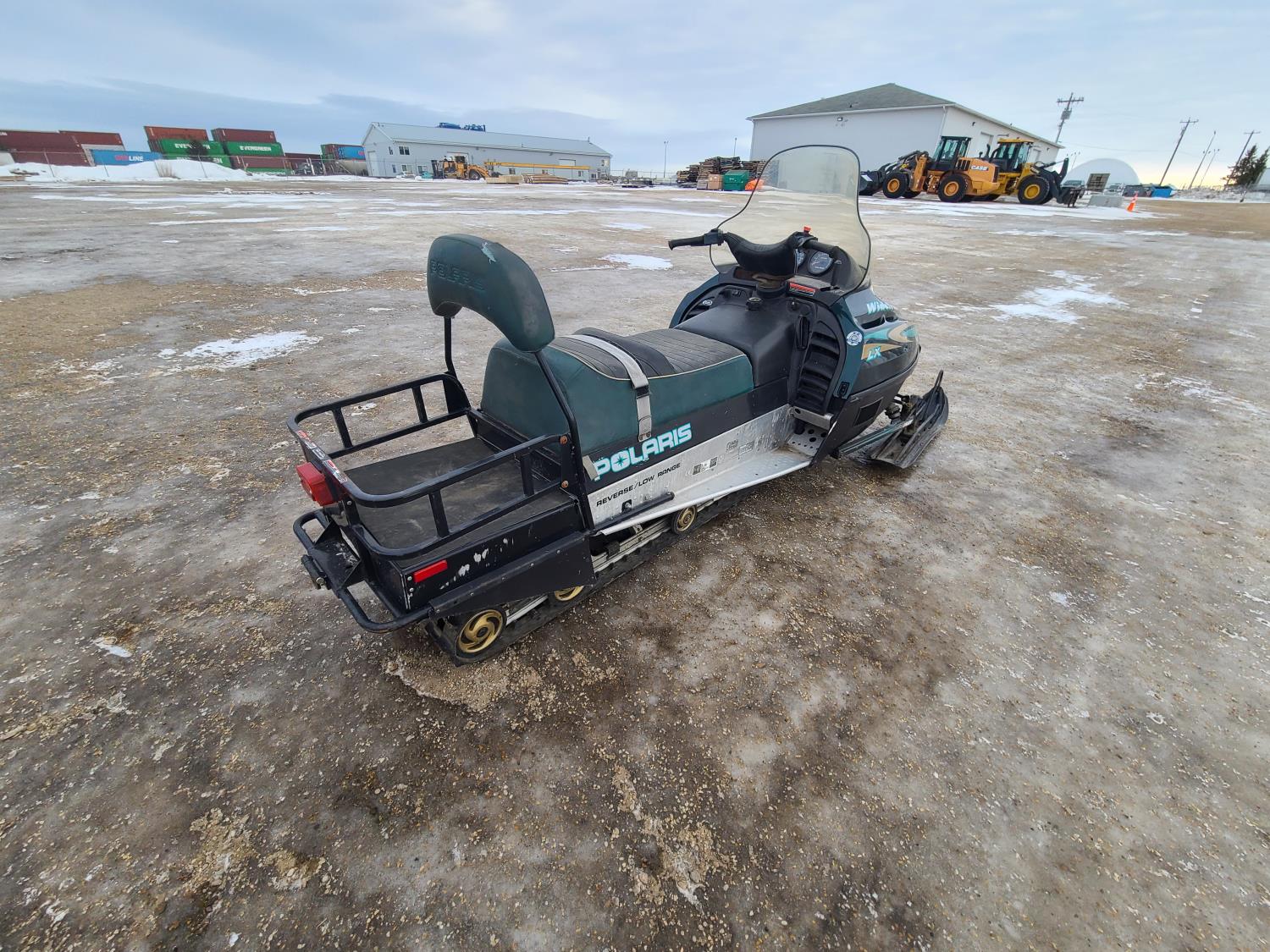 500 cc Polaris 2 cylinder 2 stroke engine, electric start, reverse, windshield, hand and thumb warmers, 2 up seat with backrest, 156 inch long track, 1 inch paddles
