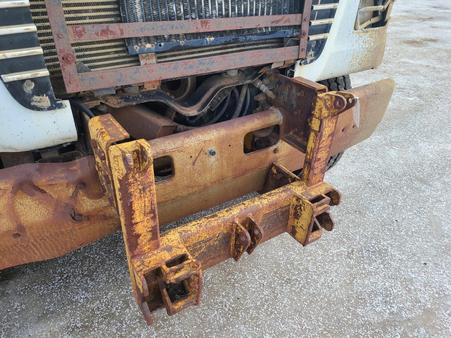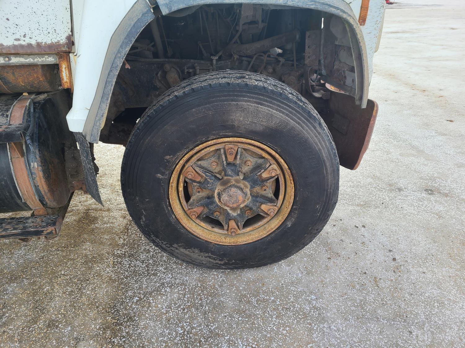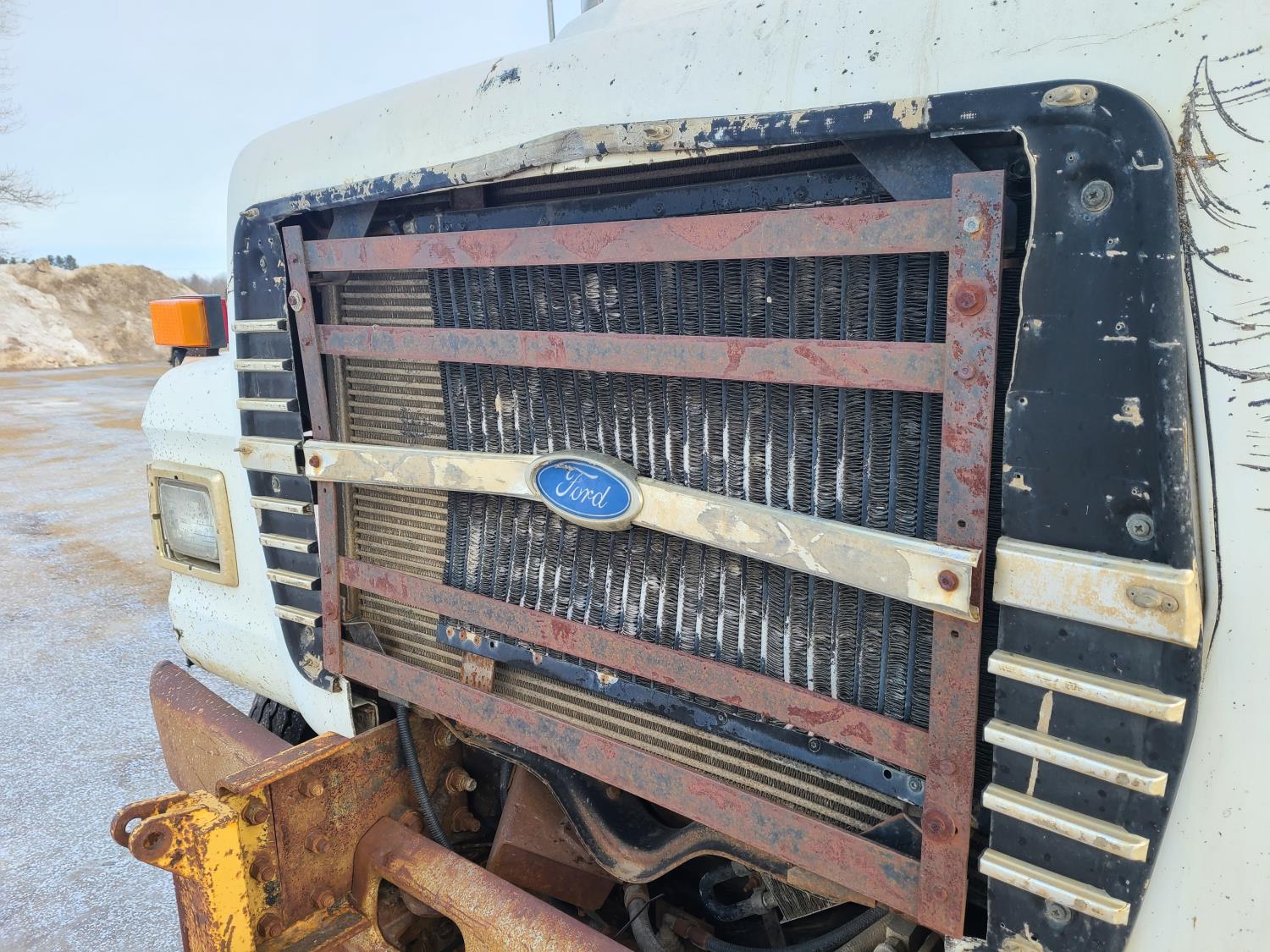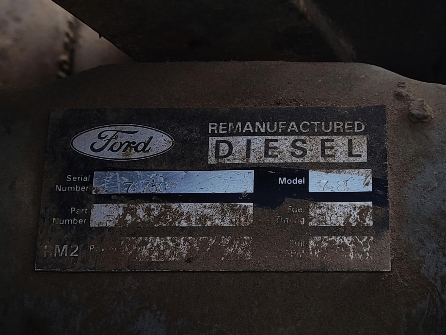 Ford 7.8 L 6 cylinder diesel engine, positive air shutoff, automatic transmission, radio, 14 ft box, beacons, PTO pump, spring suspension, diff lock, 188 inch WB, 315/80R22.5 front tires, 11R22.5 rear tires