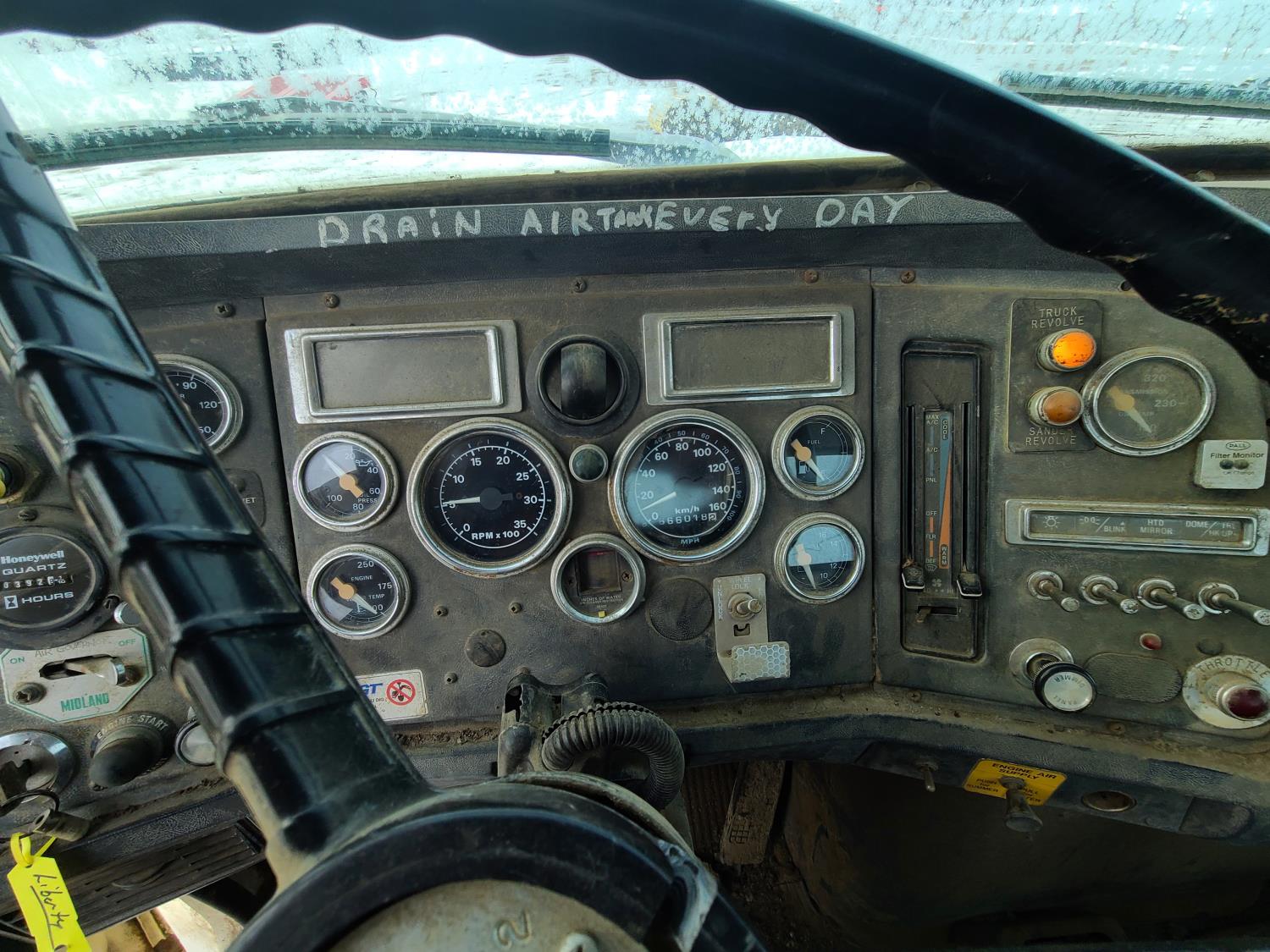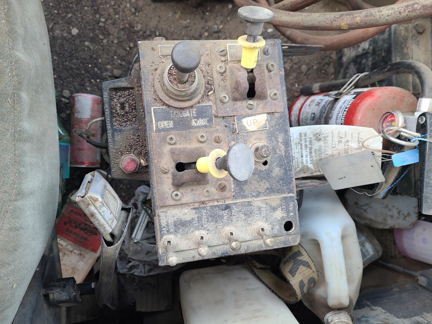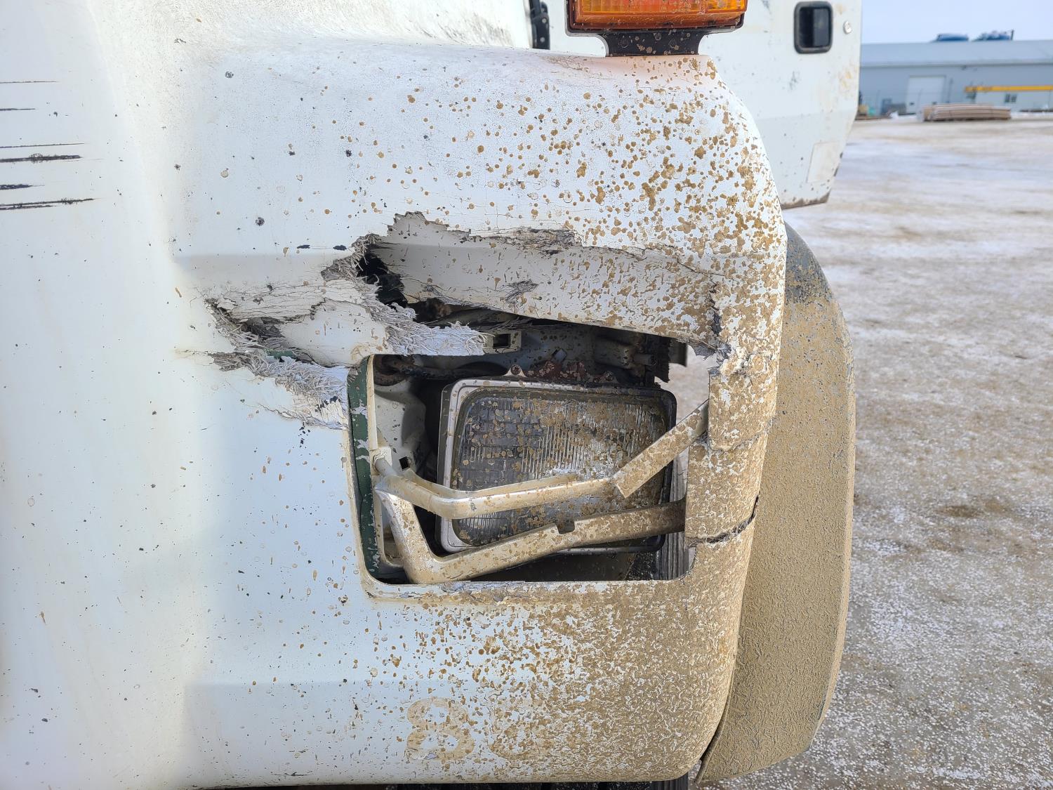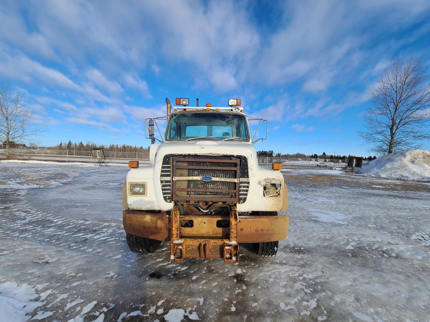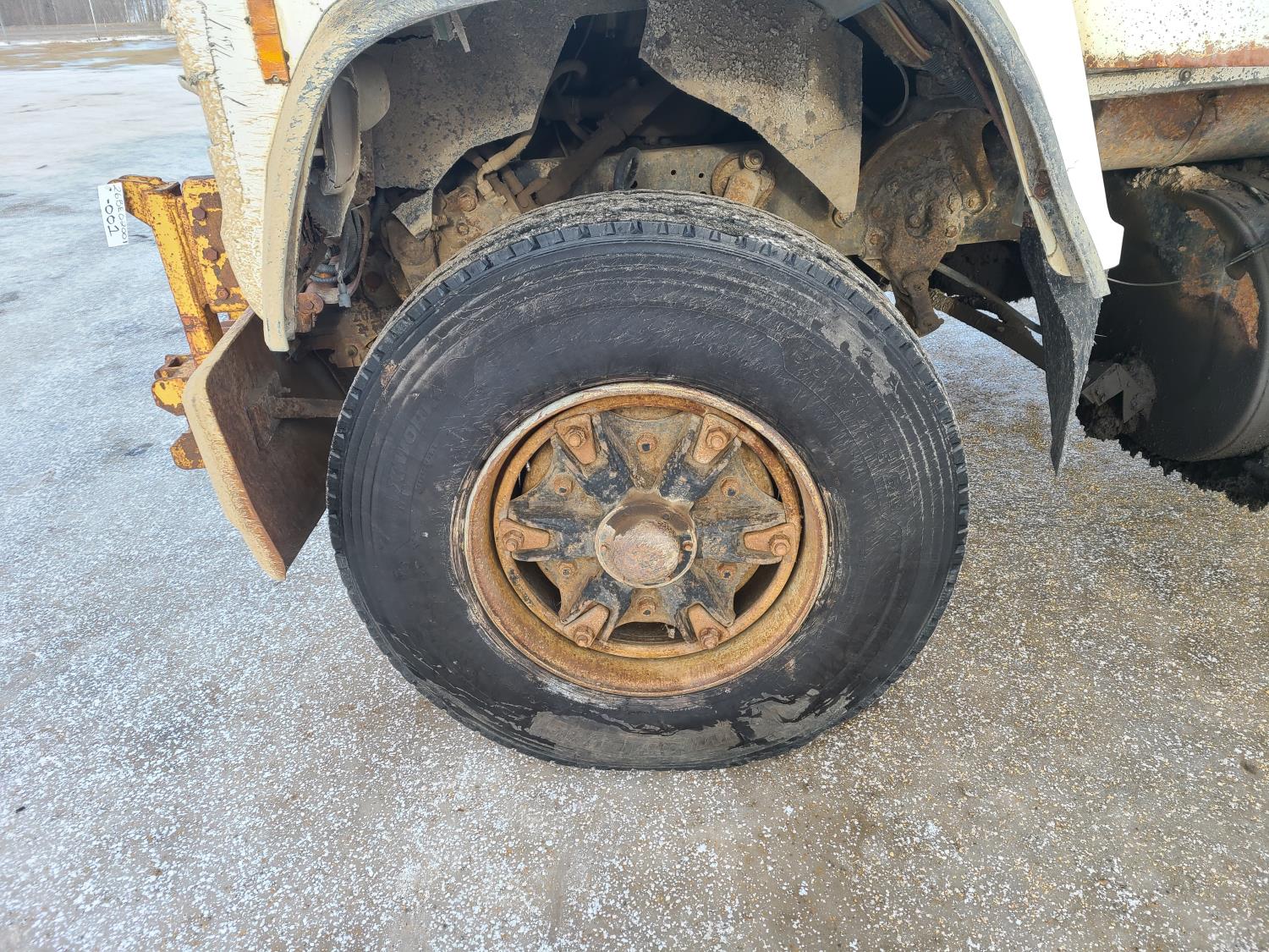Ford 7.8 L 6 cylinder diesel engine, positive air shutoff, automatic transmission, radio, 14 ft box, beacons, PTO pump, spring suspension, diff lock, 188 inch WB, 315/80R22.5 front tires, 11R22.5 rear tires