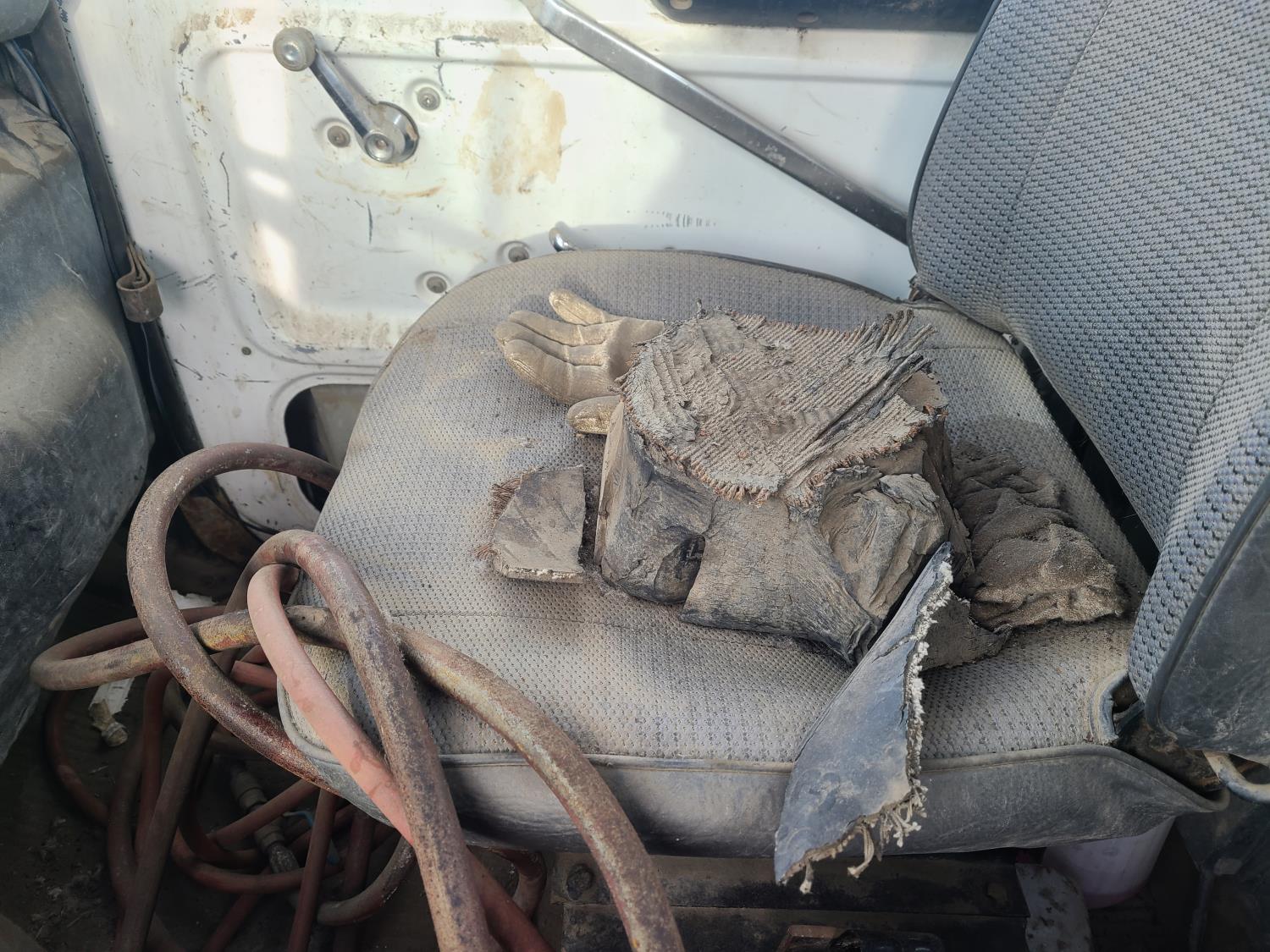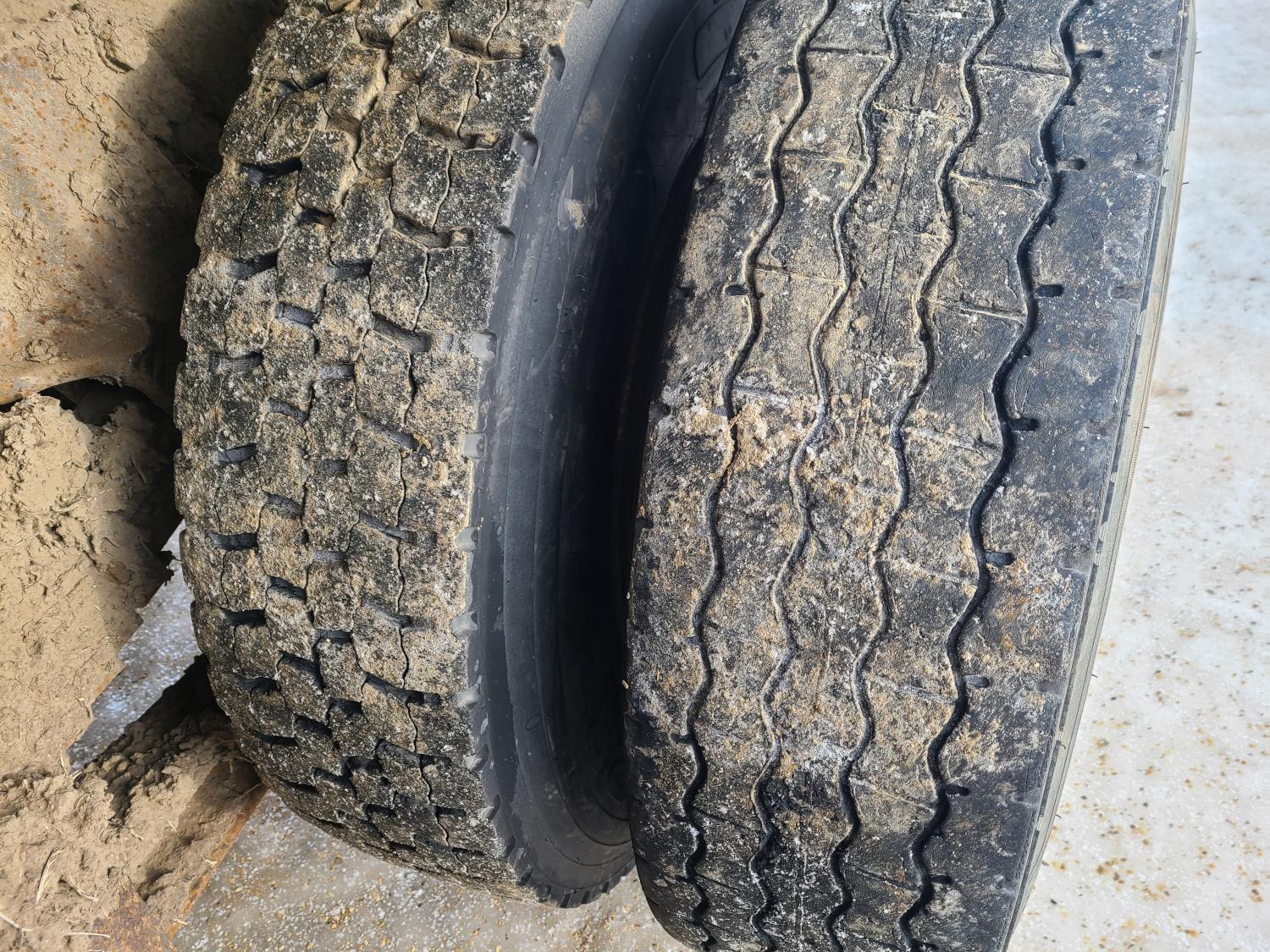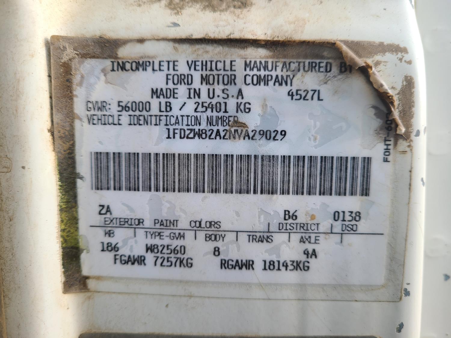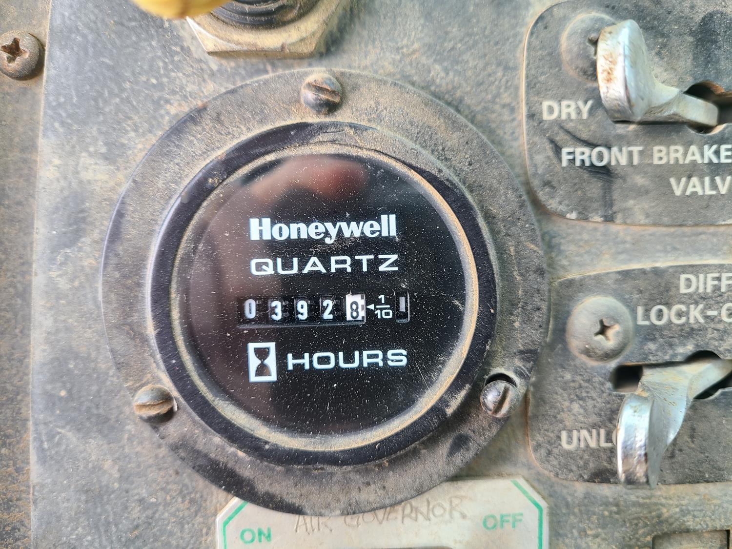 Ford 7.8 L 6 cylinder diesel engine, positive air shutoff, automatic transmission, radio, 14 ft box, beacons, PTO pump, spring suspension, diff lock, 188 inch WB, 315/80R22.5 front tires, 11R22.5 rear tires