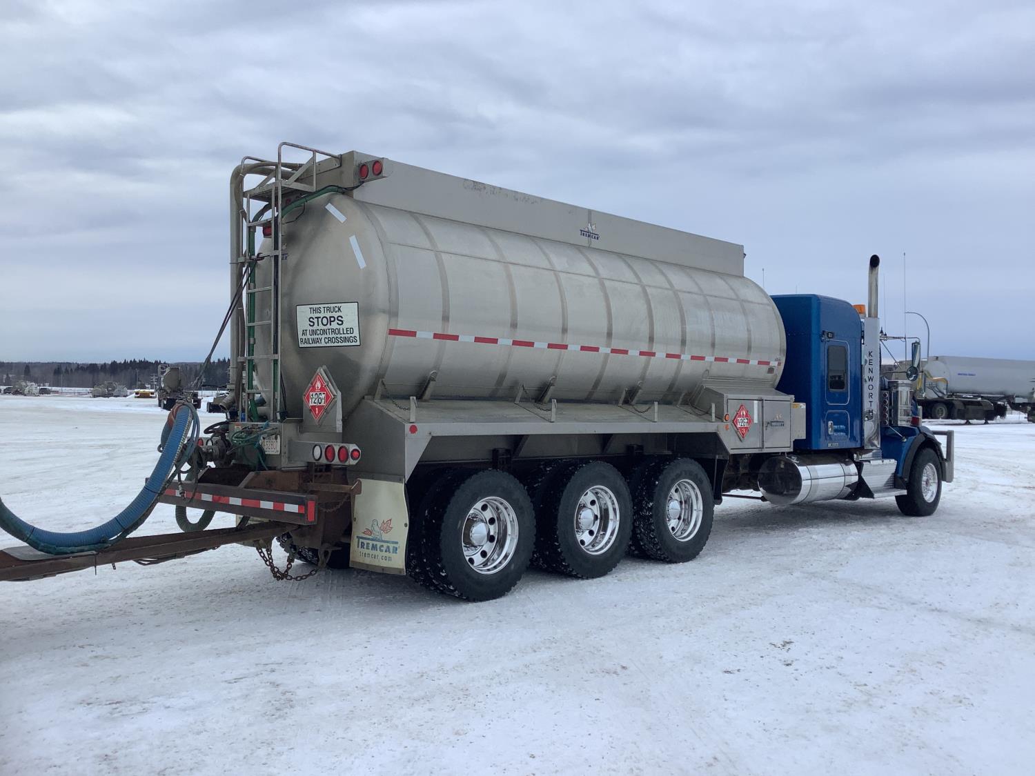 Cummins ISX 6 cylinder 525 HP engine, DEF deleted, engine brake, 18 speed manual transmission, 62 inch Aerocab Flat Top, sleeper, TE hydraulic pump, Tremcar 22085 liter tc407 tank, finch level monitors, Gardner Denver hydraulic system, New Way air ride suspension, 16,000 lb front axle, 58,000 lb rear axles, full lockers, 4.30 ratio, dual steer boxes, pintle hitch, all aluminum wheels, 385/65R22.5 front tires, 11R24.5 rear tires