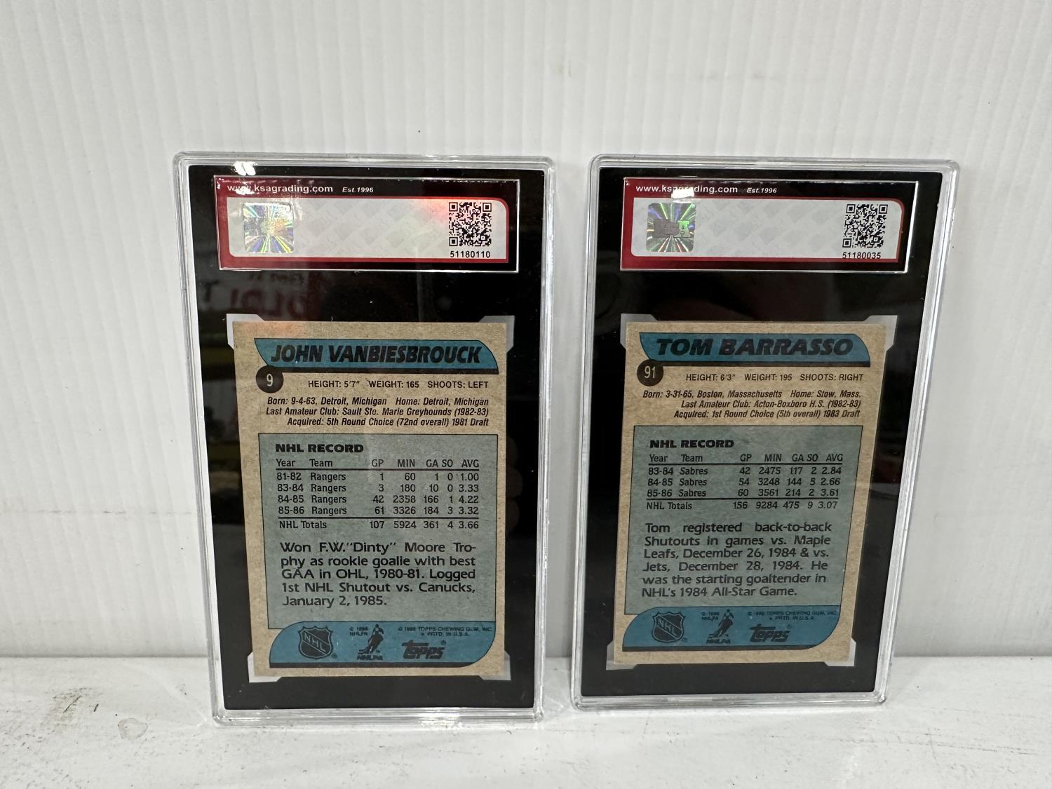 1986-87 Topps #9 John Vanbiesbrouck Rookie Card and Topps #91 Tom Barrasso Hockey Card