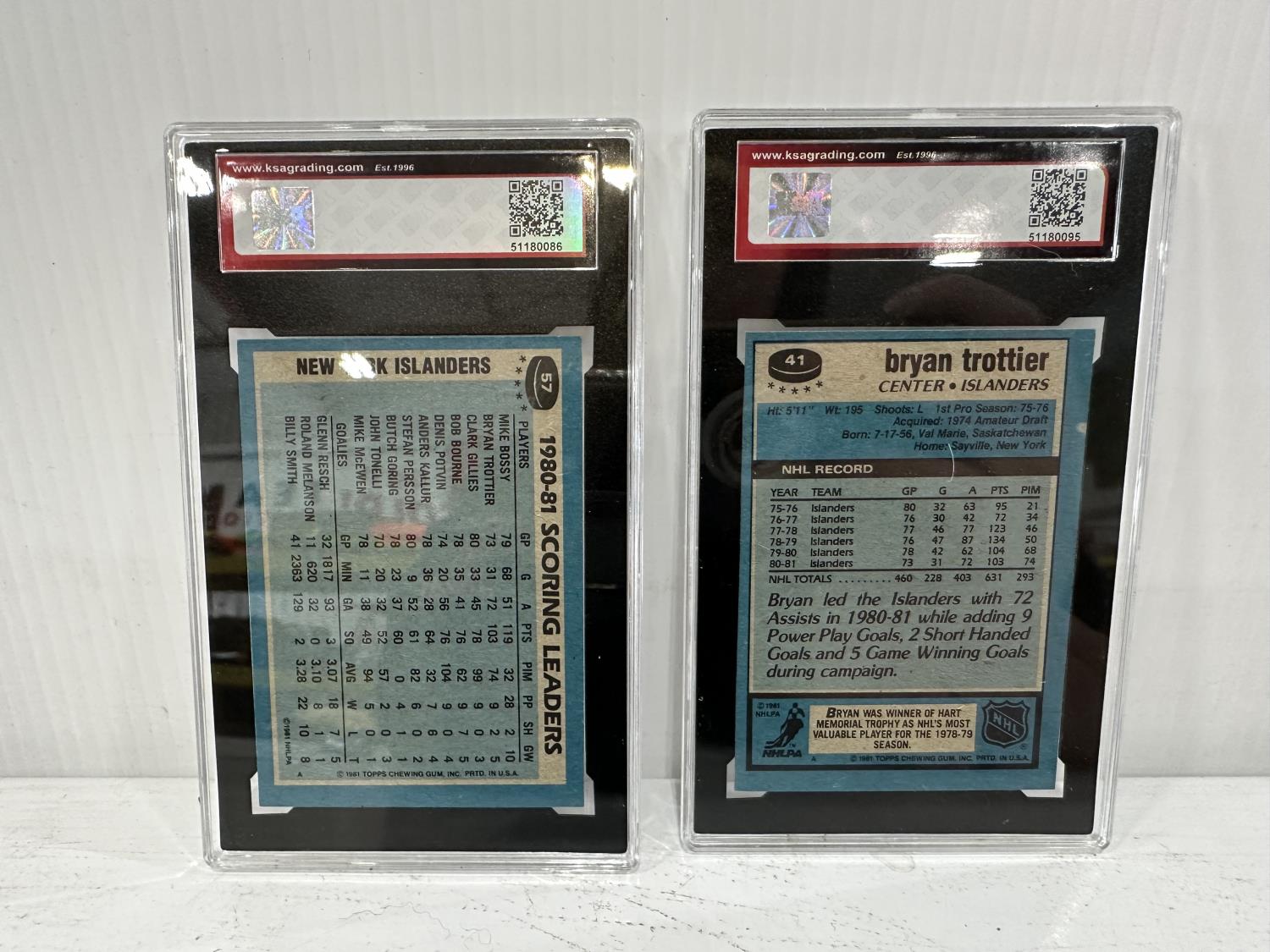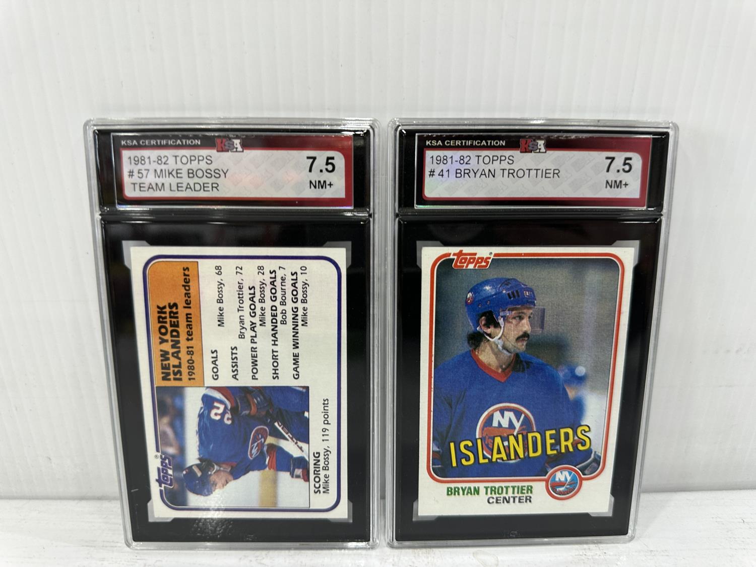 1981-82 Topps #57 Mike Bossy Team Leader Card and 1981-82 Topps #41 Bryan Trottier Hockey Card