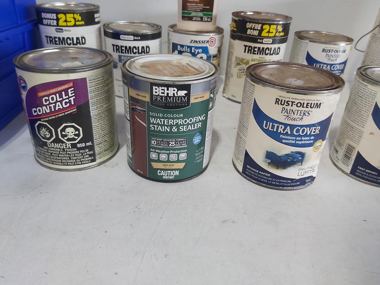 1380 (2) Plastic Stackable Bins, Paint and Contact Glue