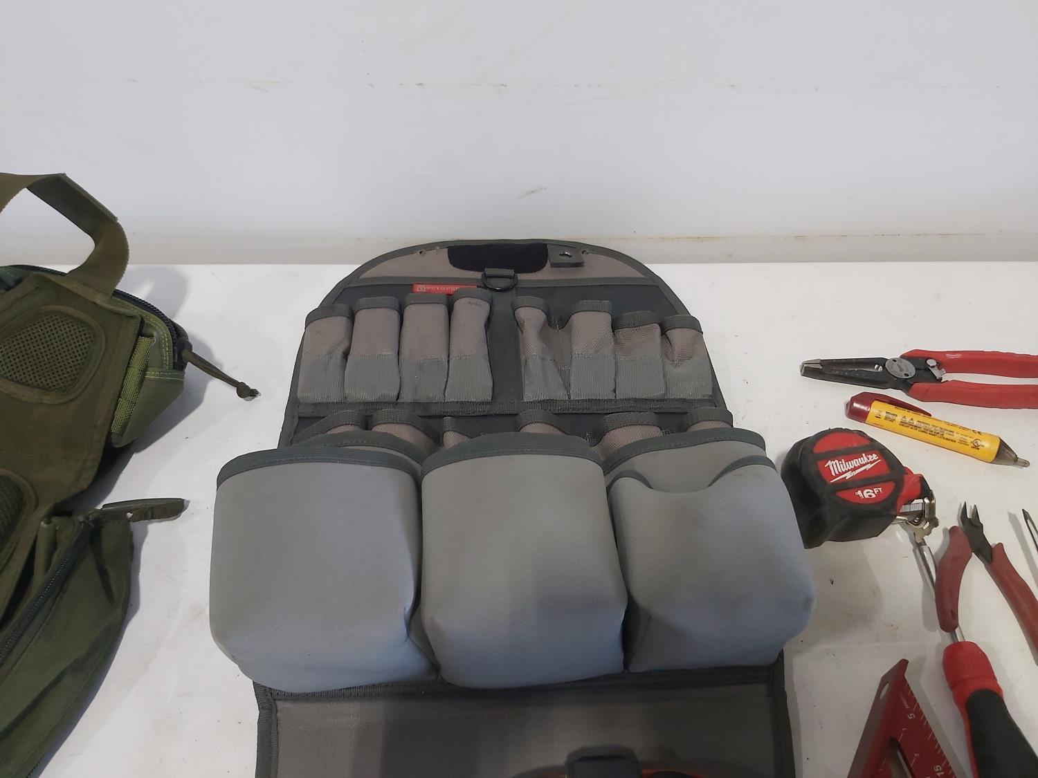 1100 (2) Tool Bags, Large Tool Vest, Tool Storage Case and Misc Hand Tools