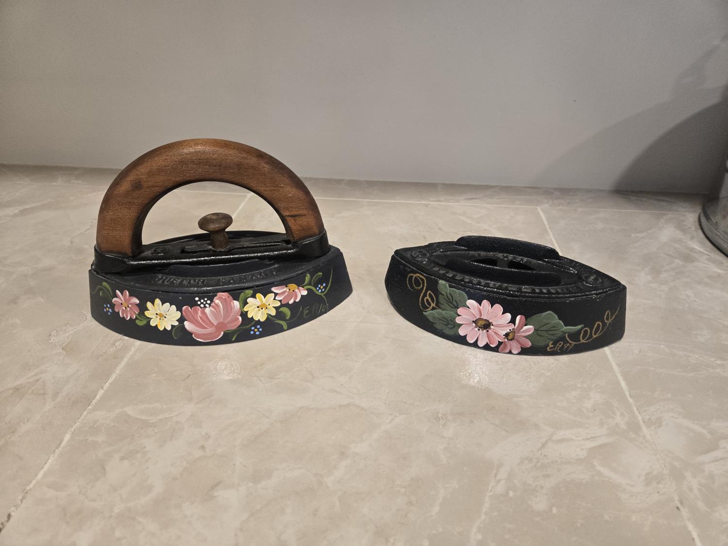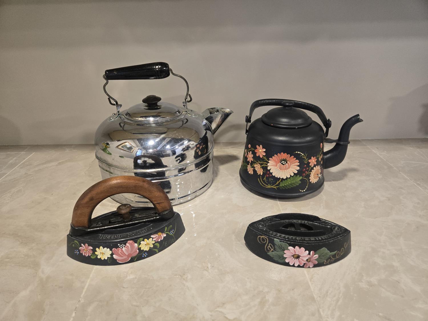 1842 (2) Vintage Kettles & (2) Sad Irons