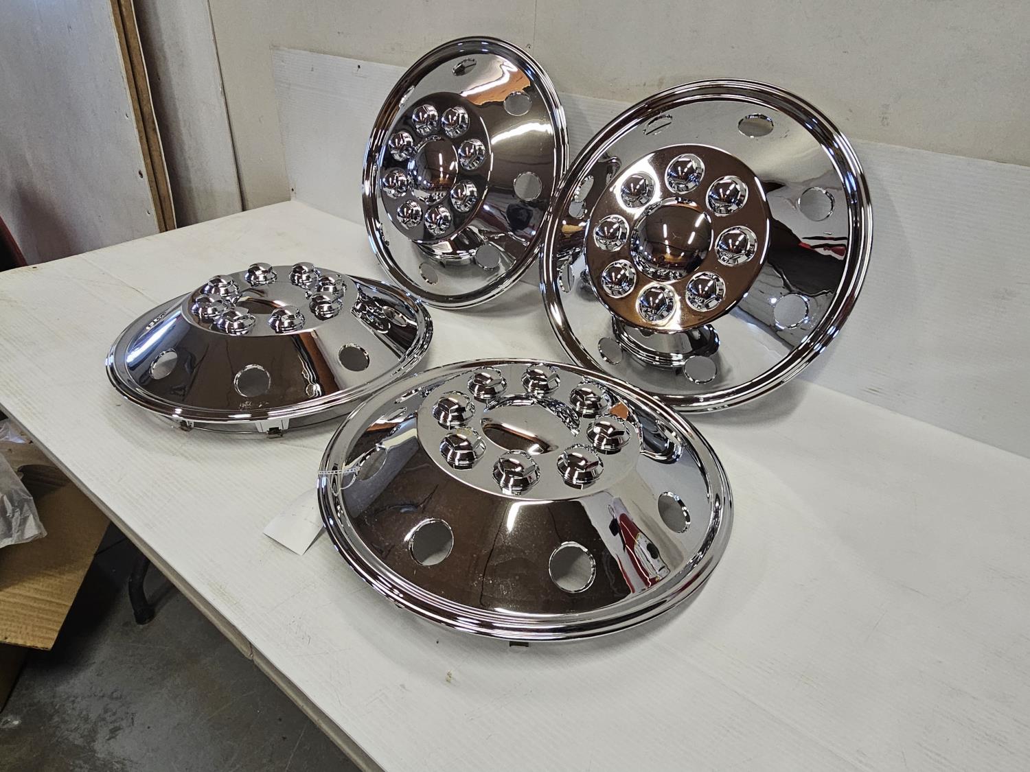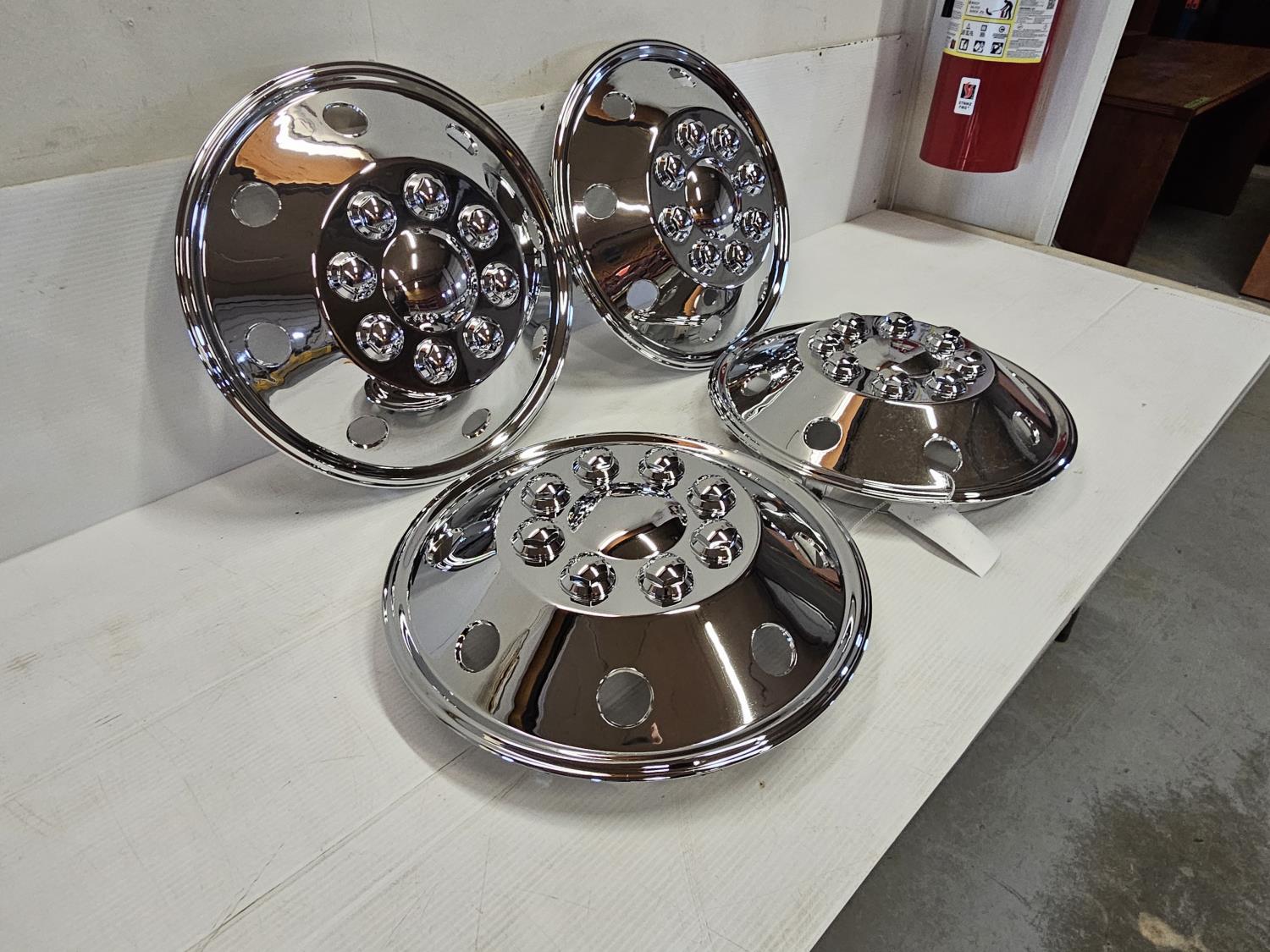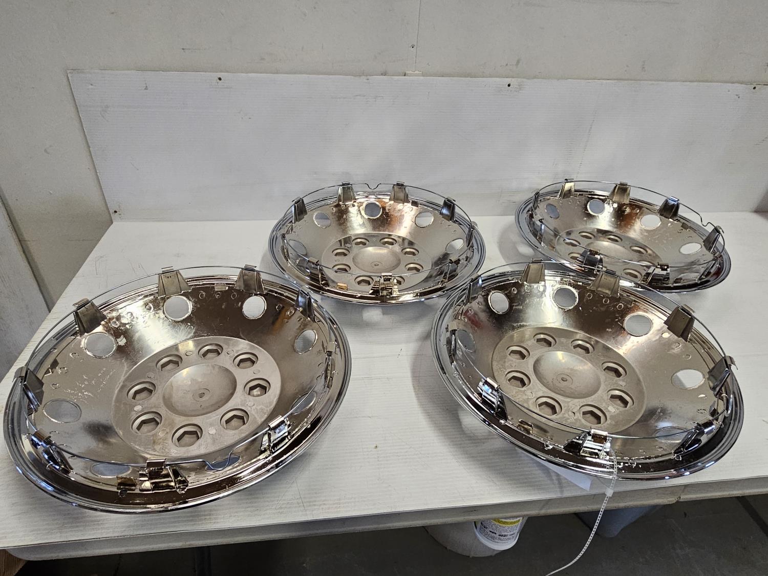 1856 (4) Chrome Hubcaps For 16 Inch Dually Wheels (Unused)