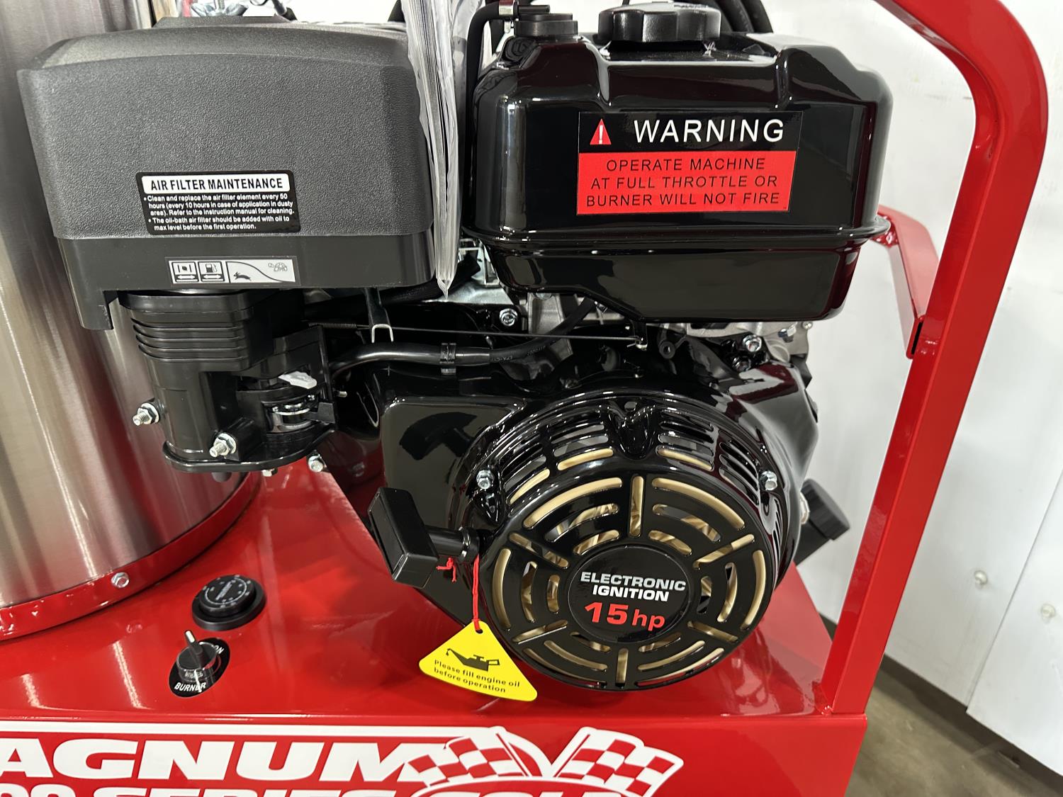 3.5 GPM at 4000 PSI, 15 HP, gasoline engine, electric start, 12 volt burner, oil/diesel fired burned/thermostat, schedule 80 coil with stainless steel housing, fully welded, powder coated frame, 10 gallon poly fuel tank, 30' hose and wand