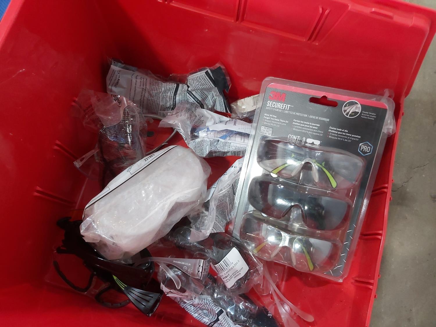 bins 16 inch w x 18 inch d x 11 inch hmisc vinyl/insulating tape, safe 12 inch x 8 inch, safety glasses, Milwaukee hard hat liner