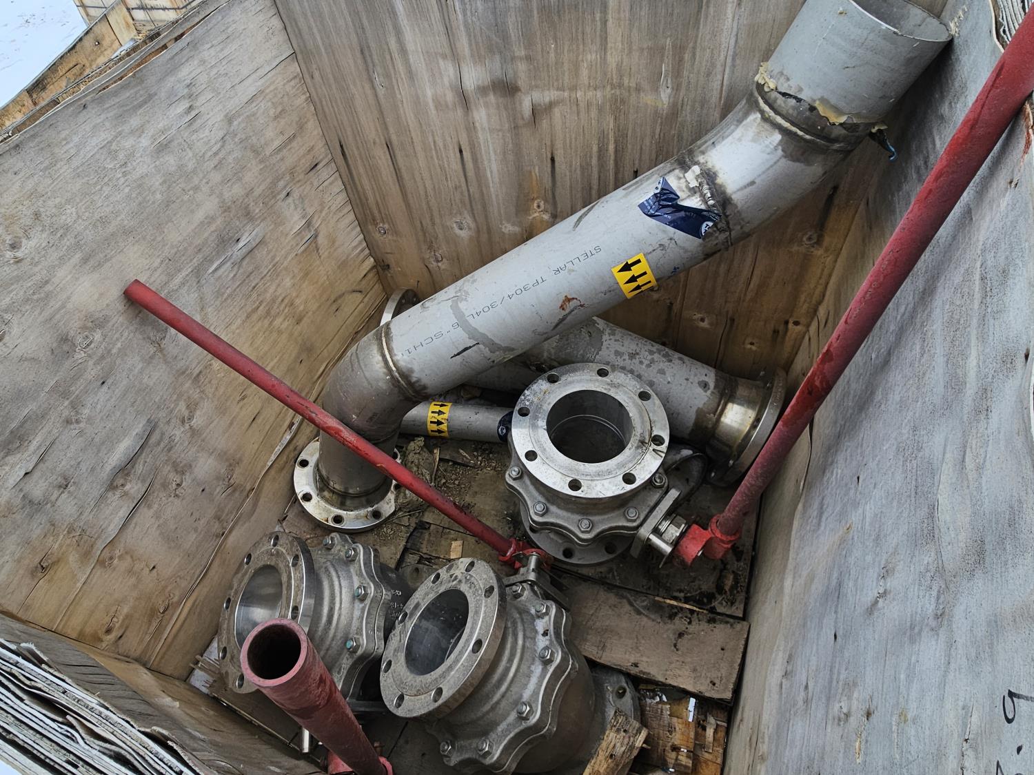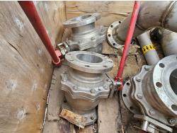 (4) flanges, (3) valves