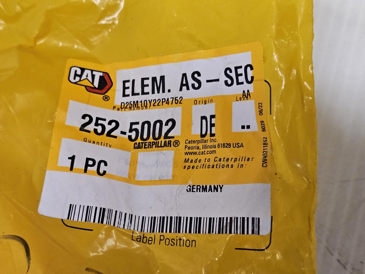 1844 Qty of (2) Caterpillar 252-5002 Air Filters (Unused)