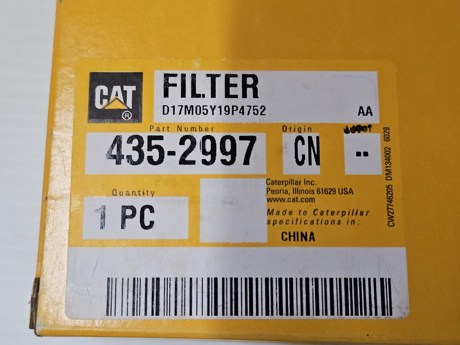 1803 Qty of (2) Caterpillar 435-2997 Cabin Air Filters (Unused)
