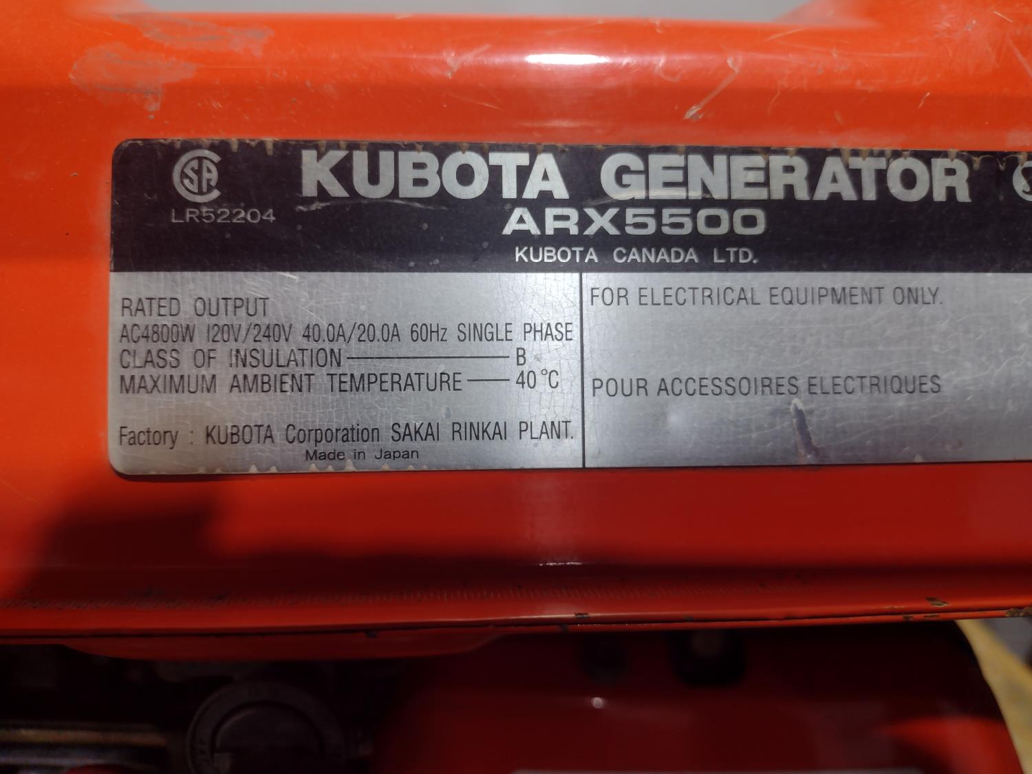 1316 Kubota ARX5500 Gas Generator