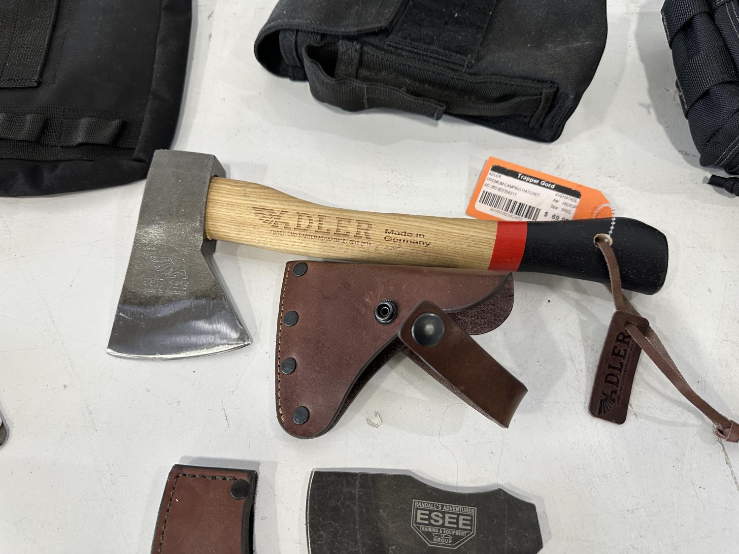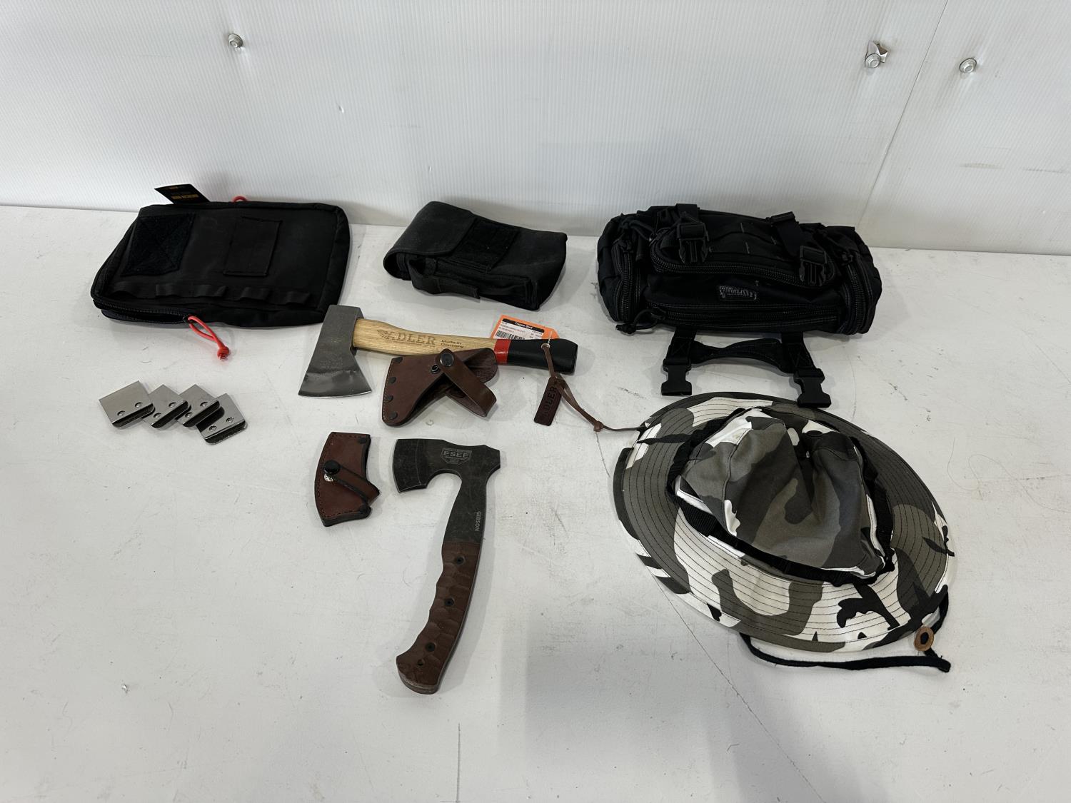 1180 Gibson Hatchet, Adler Hatchet and Assorted Pouches