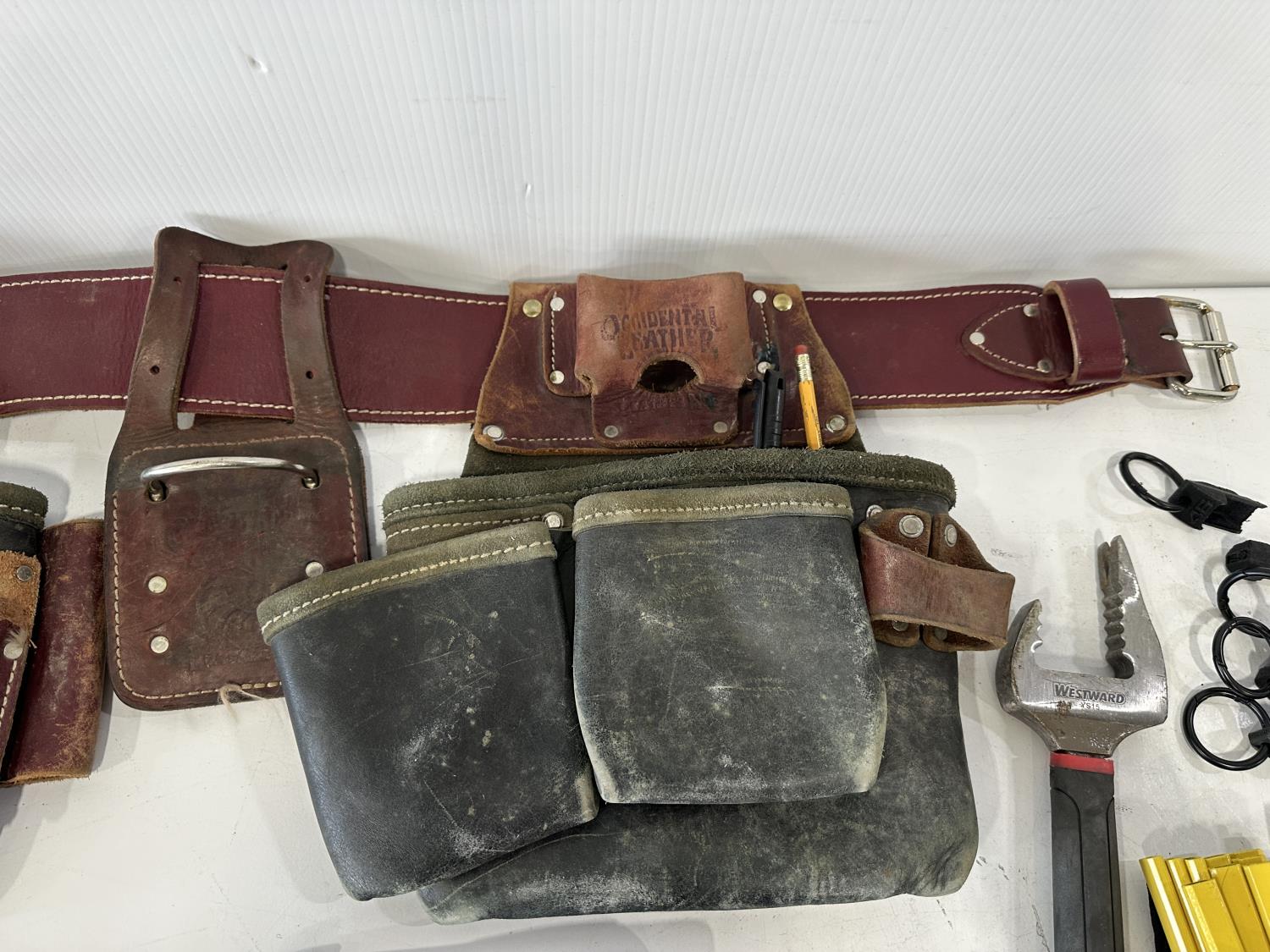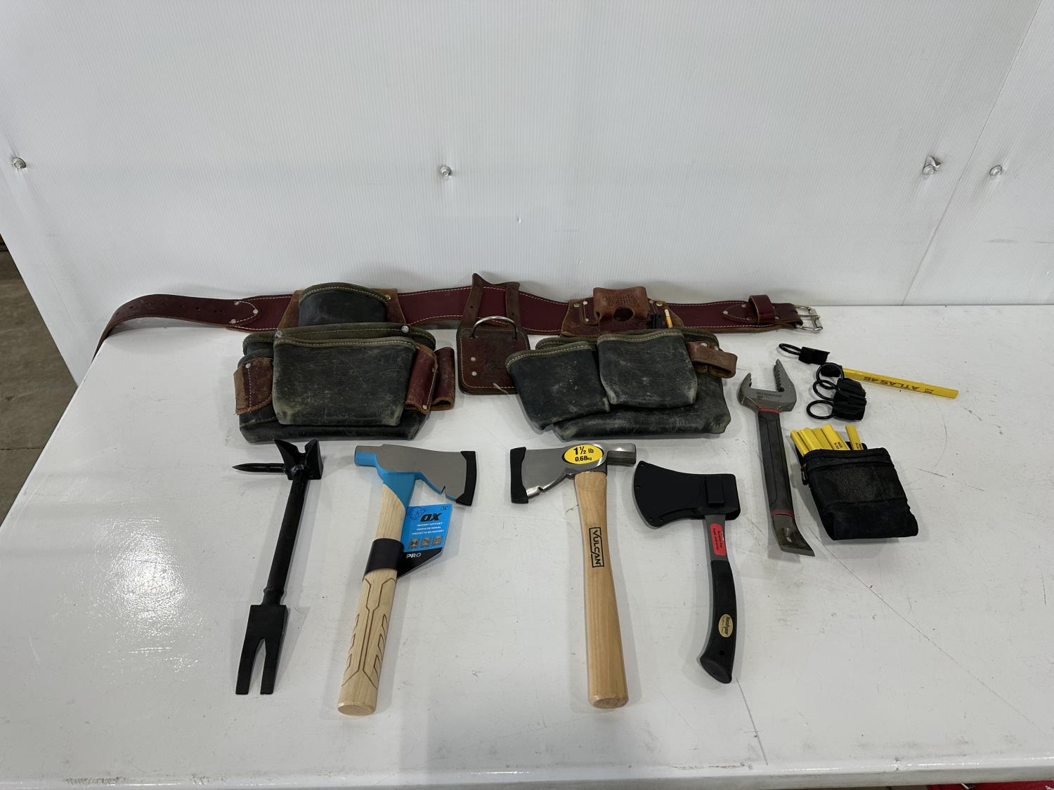 1181 Leather Tool Belt, (3) Hatchets, Pry Tools and Pencil Holders