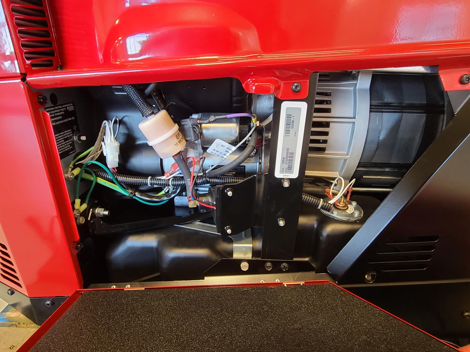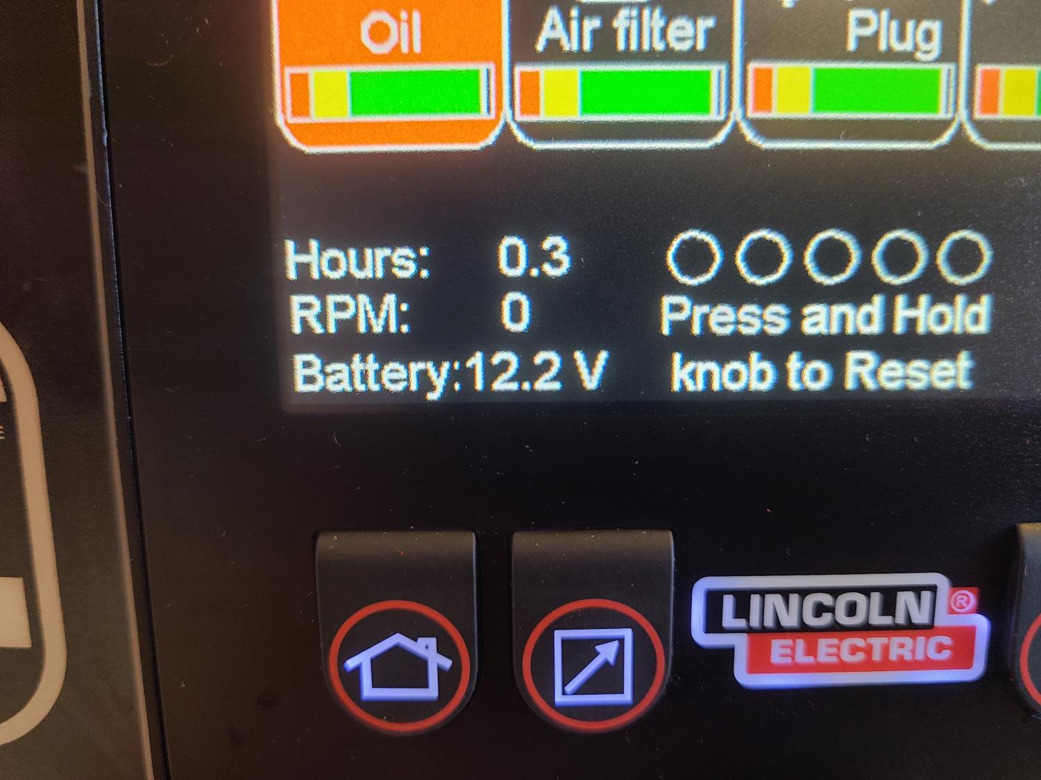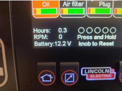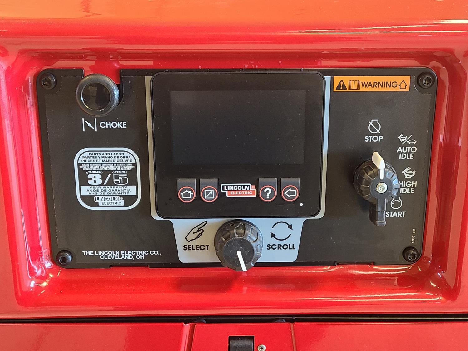 Single phase auxiliary output, 9,500 watts continuous, 120/240V, 60 Hz, kohler OHV command CH730, 2 cylinder air-cooled gas engine, 23.5 HP, 41 L fuel tank, stick, tig, mig, flux-cored self shielded FCAW-S & FCAW-G, 0.3 hrs