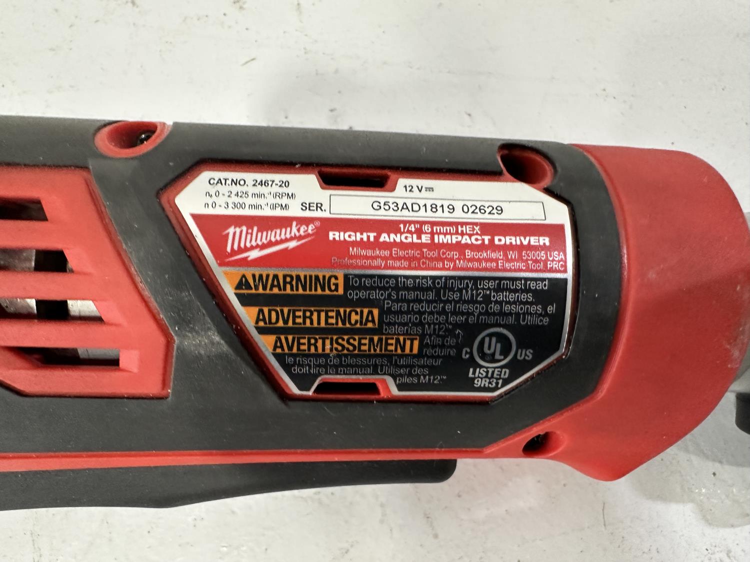 Hex Right Angle Impact Driver, 12V Input Charger & 1/4 Inch Hex Impact Driver