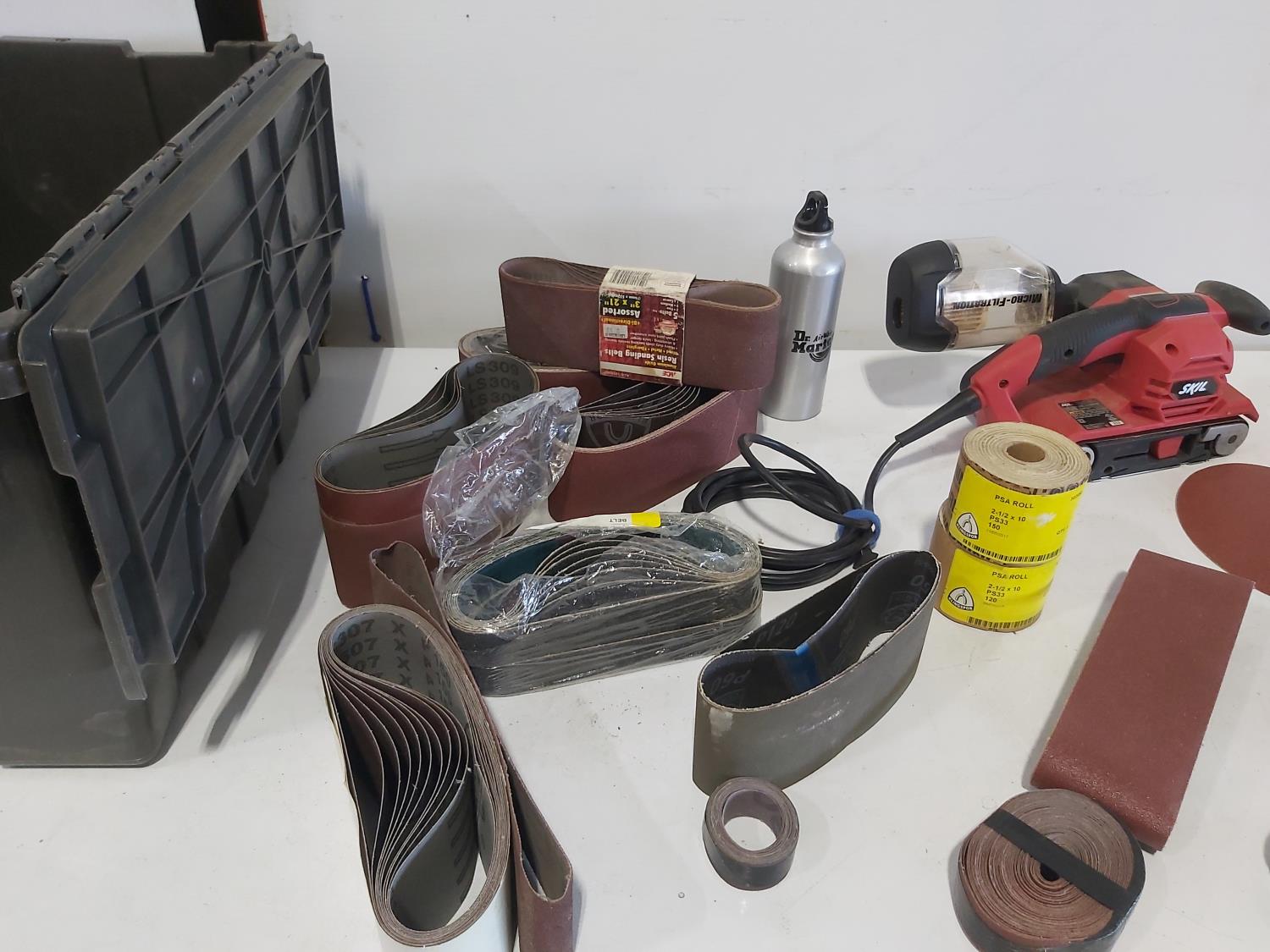 1070 Qty of Abrasive Belts and Discs, Skil Belt Sander and Flashlight