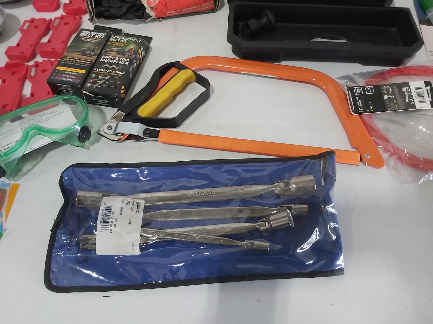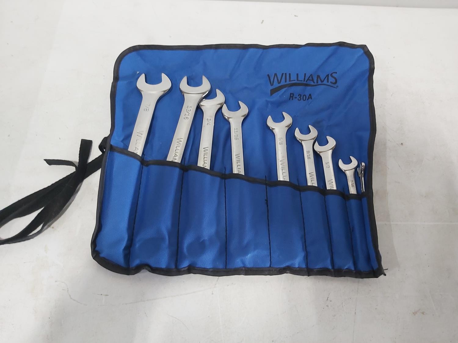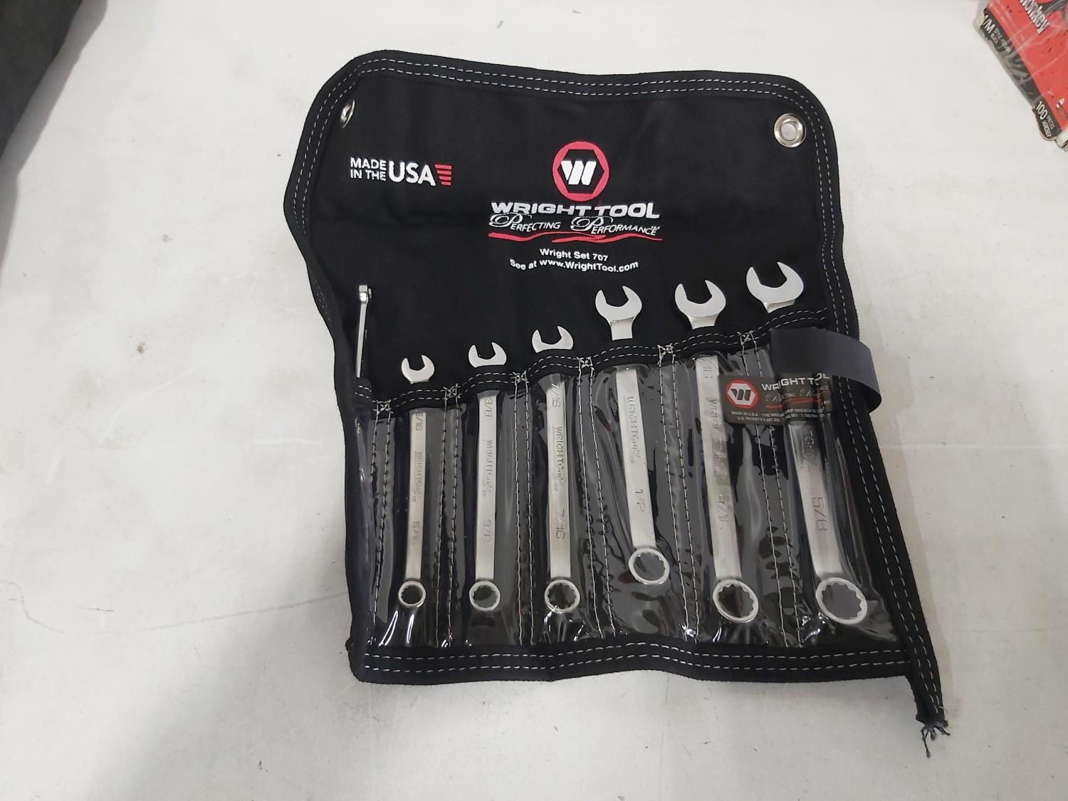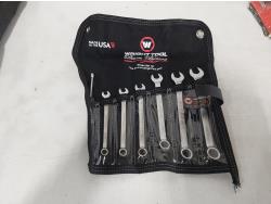 21 piece metric combination wrenches 6 to 32 mm, Wright Tools 11 piece imperial combination wrenches 3/8 inch to 1 inch, Williams 9 piece imperial 3/8 inch to 7/8 inch, Wright Tools 15 piece metric combination wrenches 7 mm to 22 mm, Wright Tools 7 piece imperial combination wrenches 1/4 inch to 5/8 inch, Williams double flex head 4 piece imperial, 12 inch combination bow and hacksaw