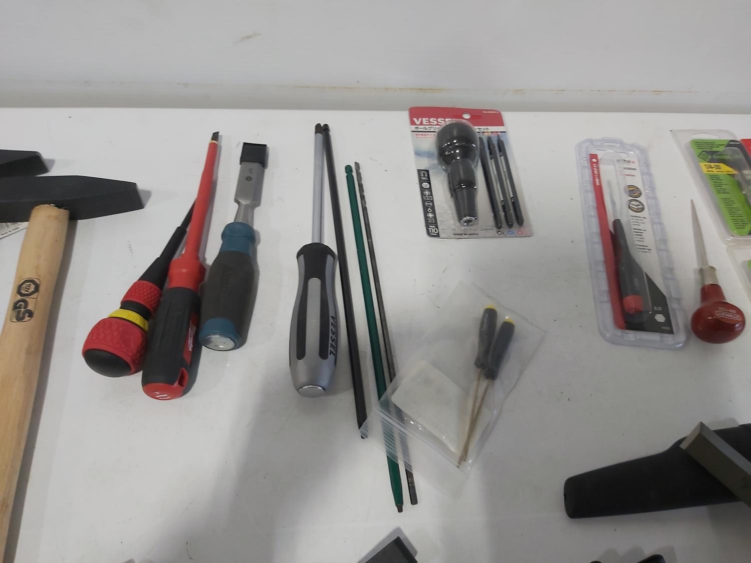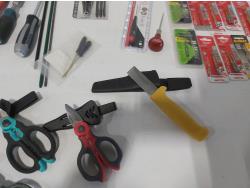(2) hammers, (3) scissors, (2) chisels, (4) screwdrivers