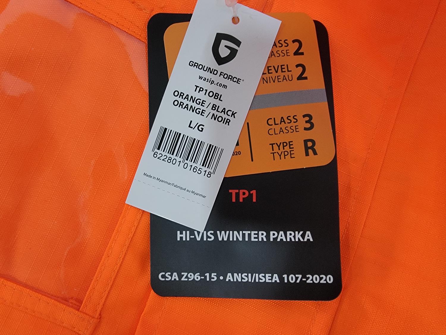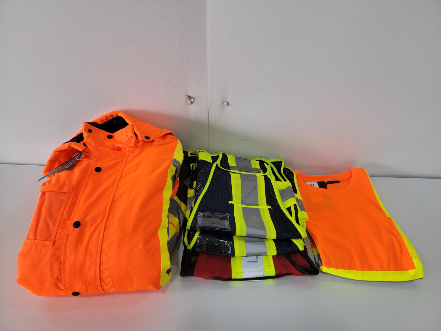 (2) Hi-Vis Mesh Traffic Vests, (1) Size Large Hi-Vis Surveyor Vest, (1) Size Large Hi-Vis Shirt and (1) Size Large Hi-Vis Winter Parka