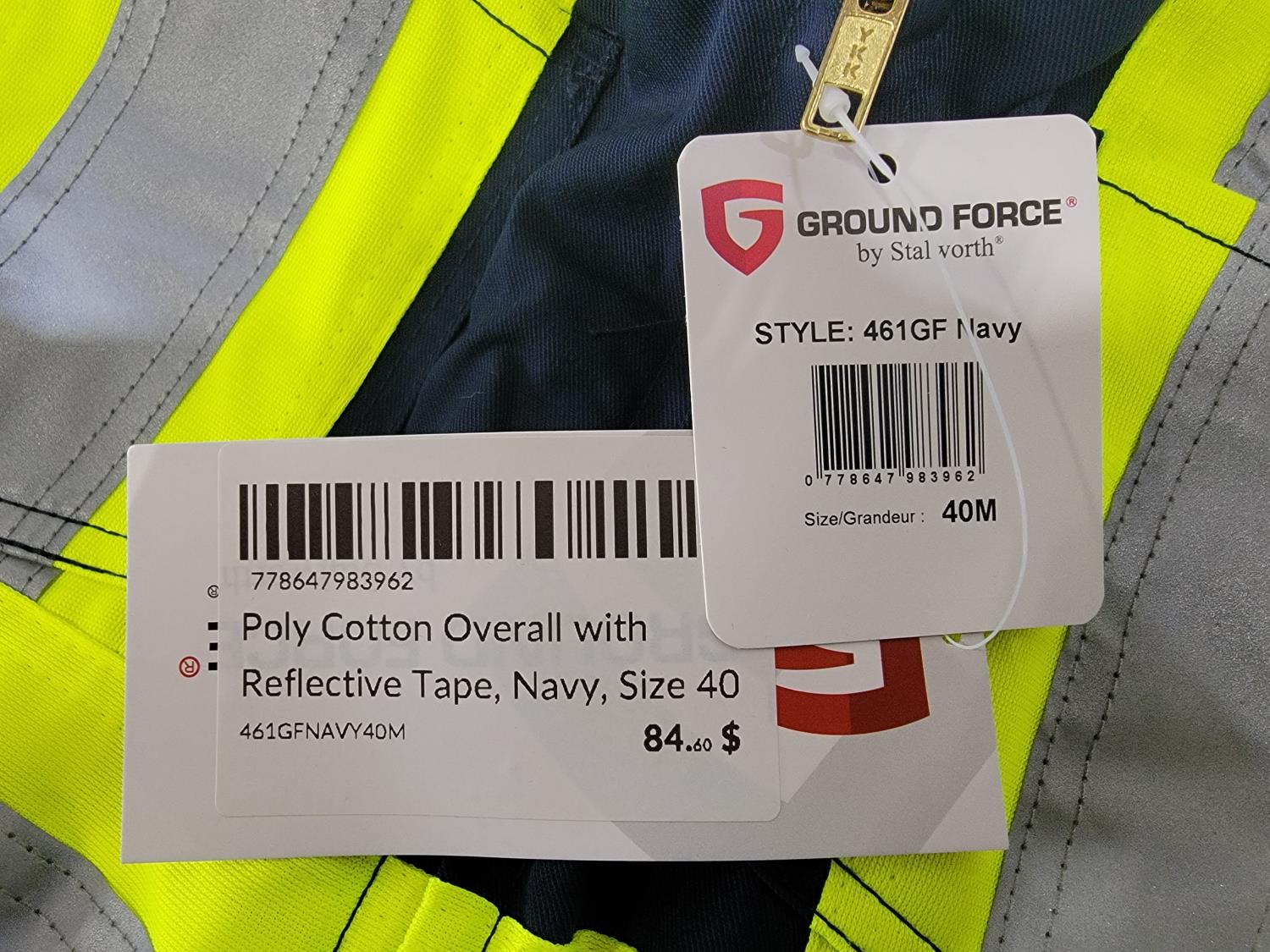 (1) Size Small Hi-Vis Safety Vest, (1) Size 40 M Coveralls and (1) Size 40 M Bibs