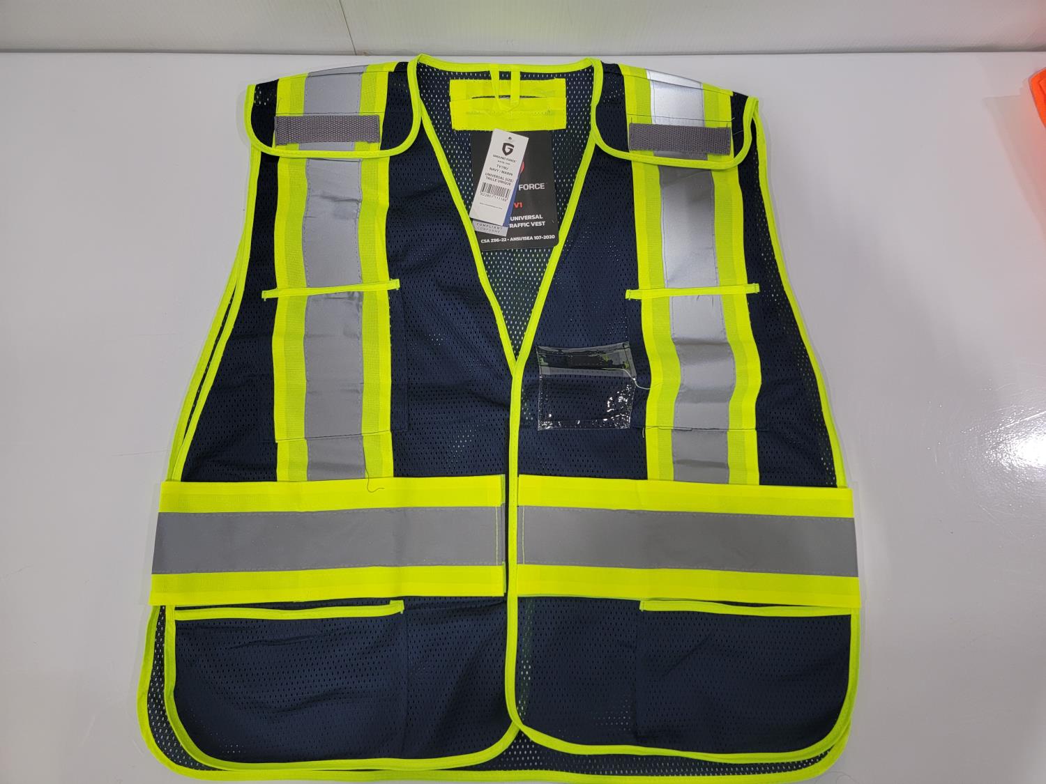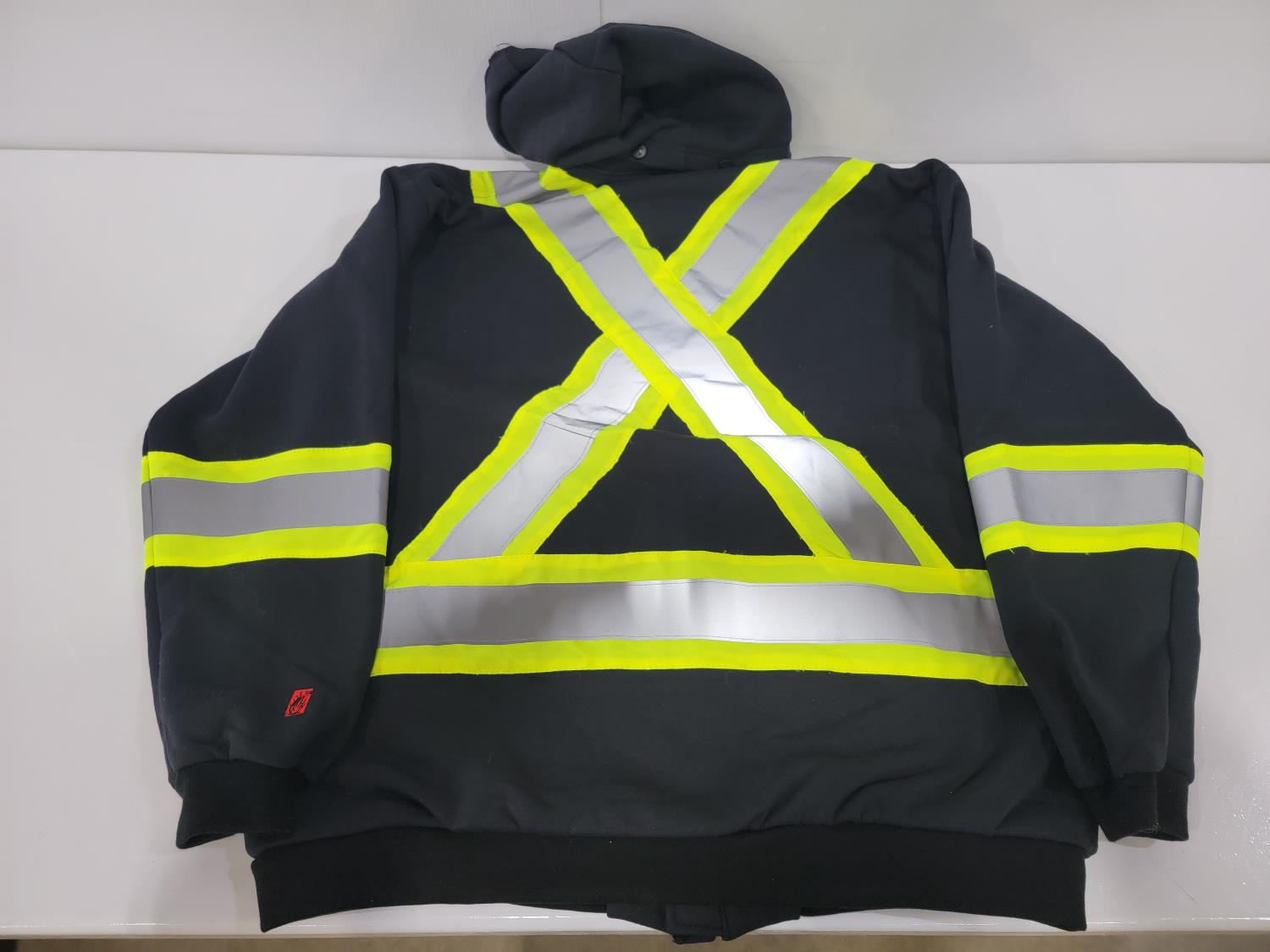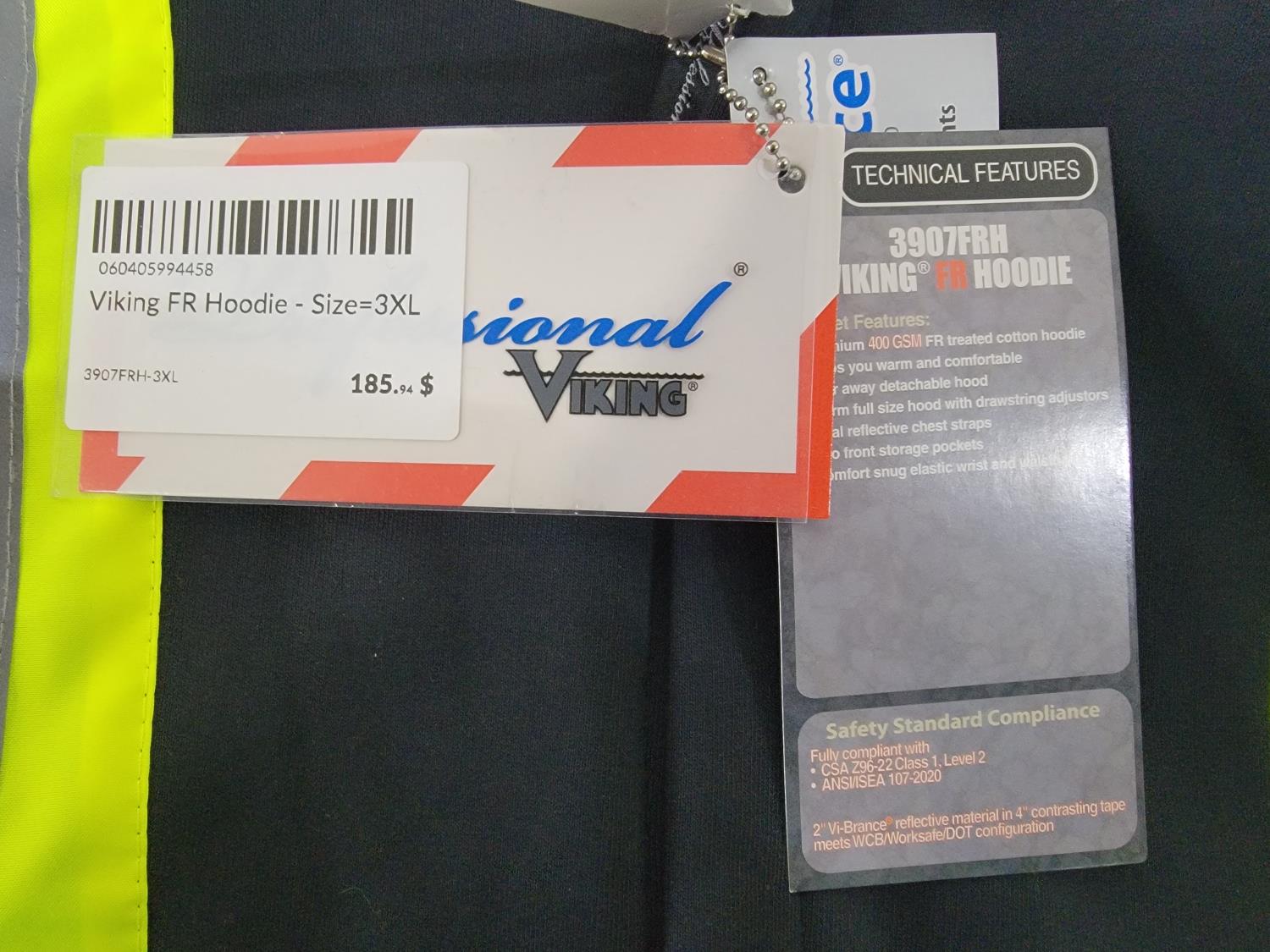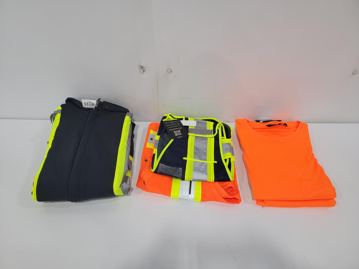 (1) Hi-Vis Mesh Traffic Vest, (1) Size 3XL Hi-Vis Surveyor Vest, (2) Size 3XL Hi-Vis Shirts and (1) Size 3XL FR Hoodie