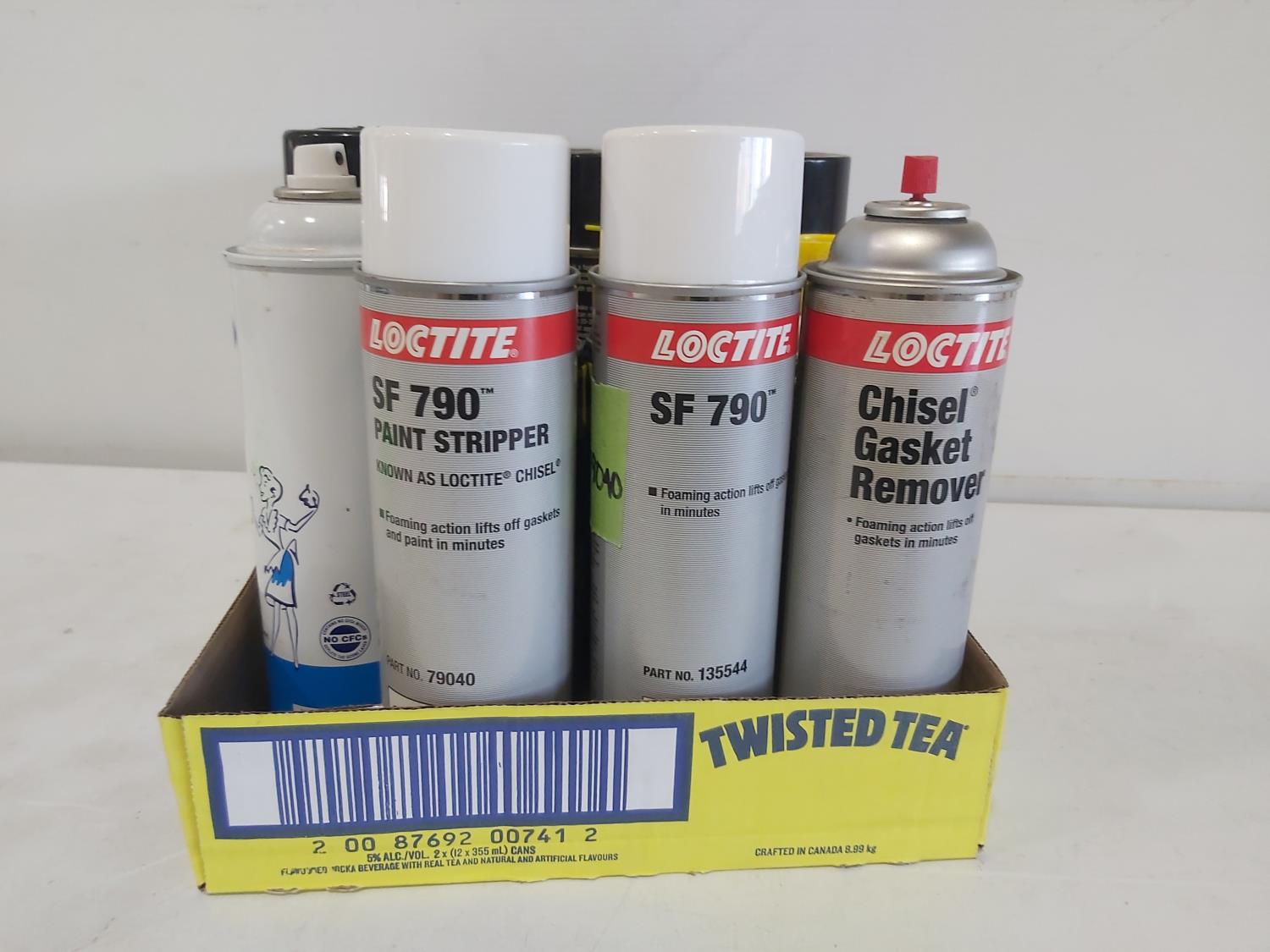 paint, lubricant, glass cleaner