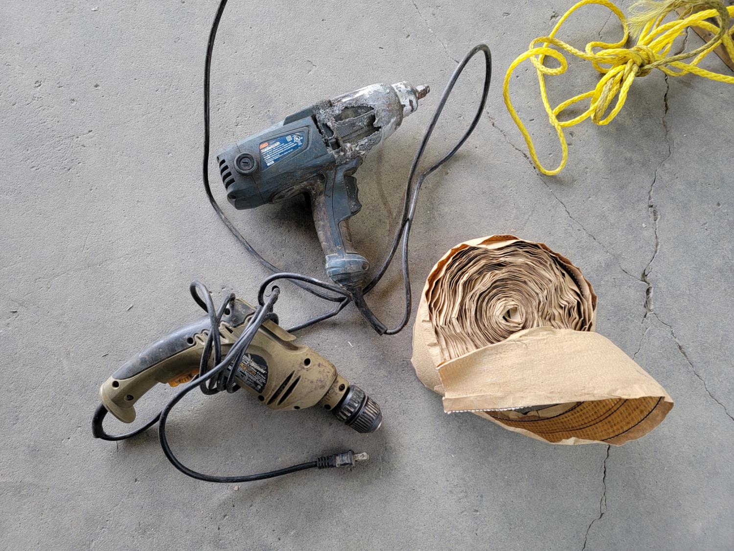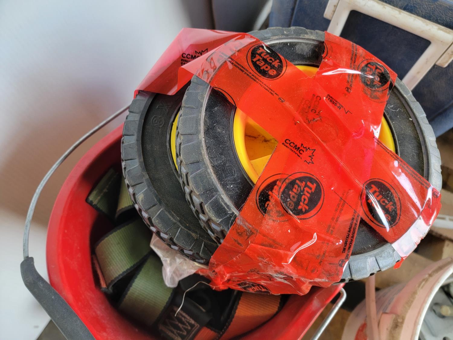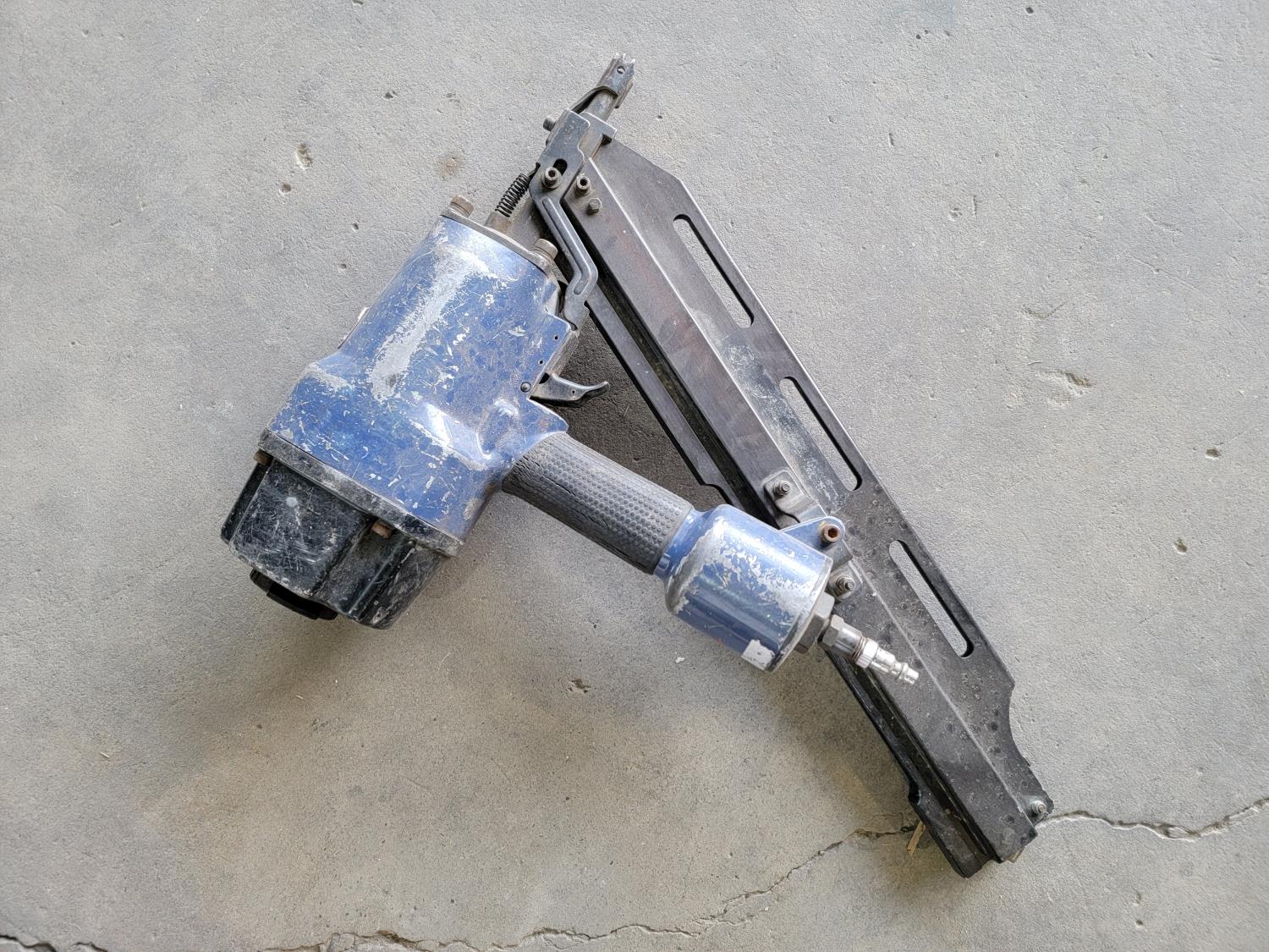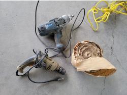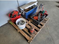 bottle jack, brad nailer, hand saw, triangle road flares, Mastercraft 1/2 inch impact wrench