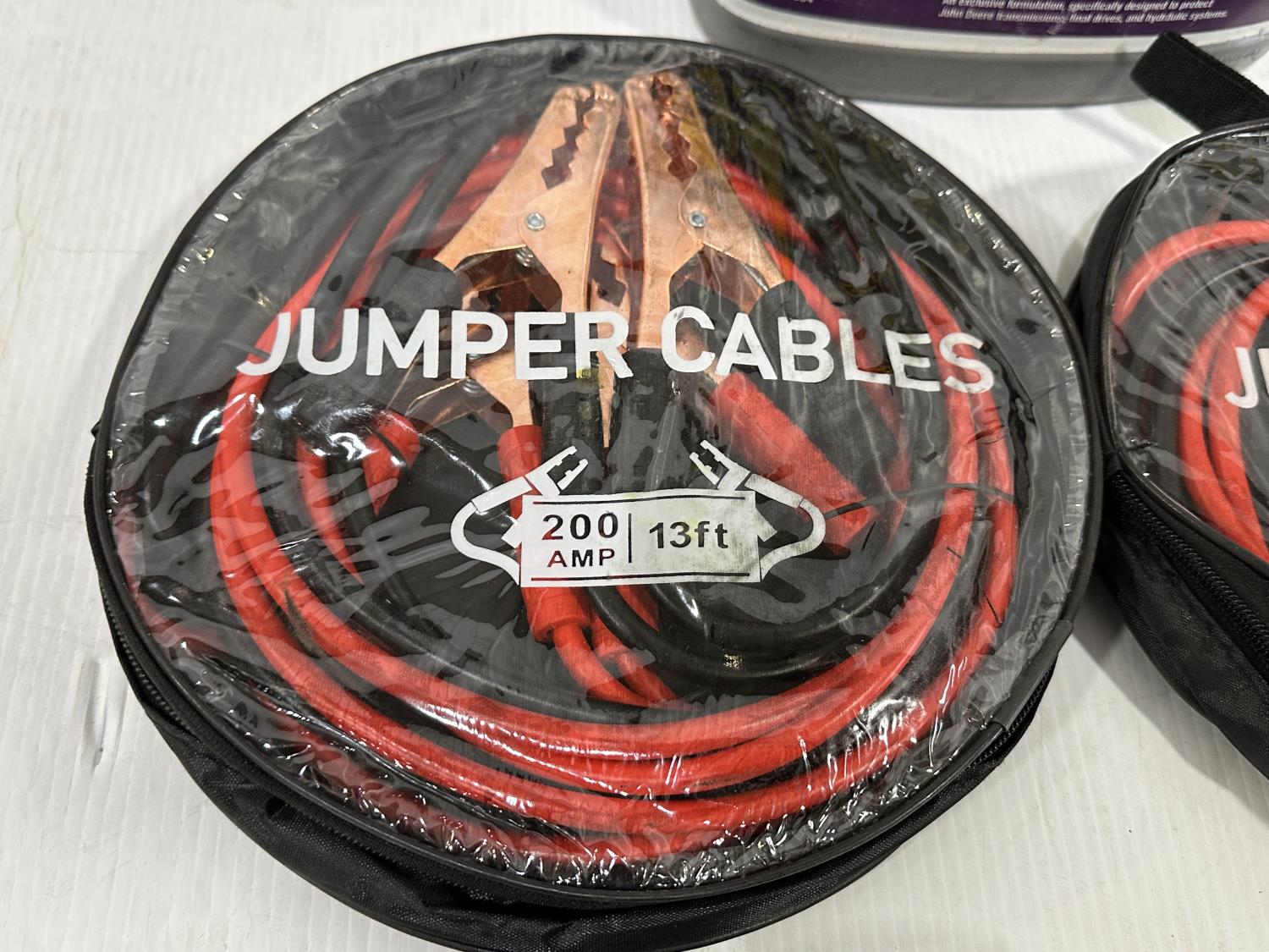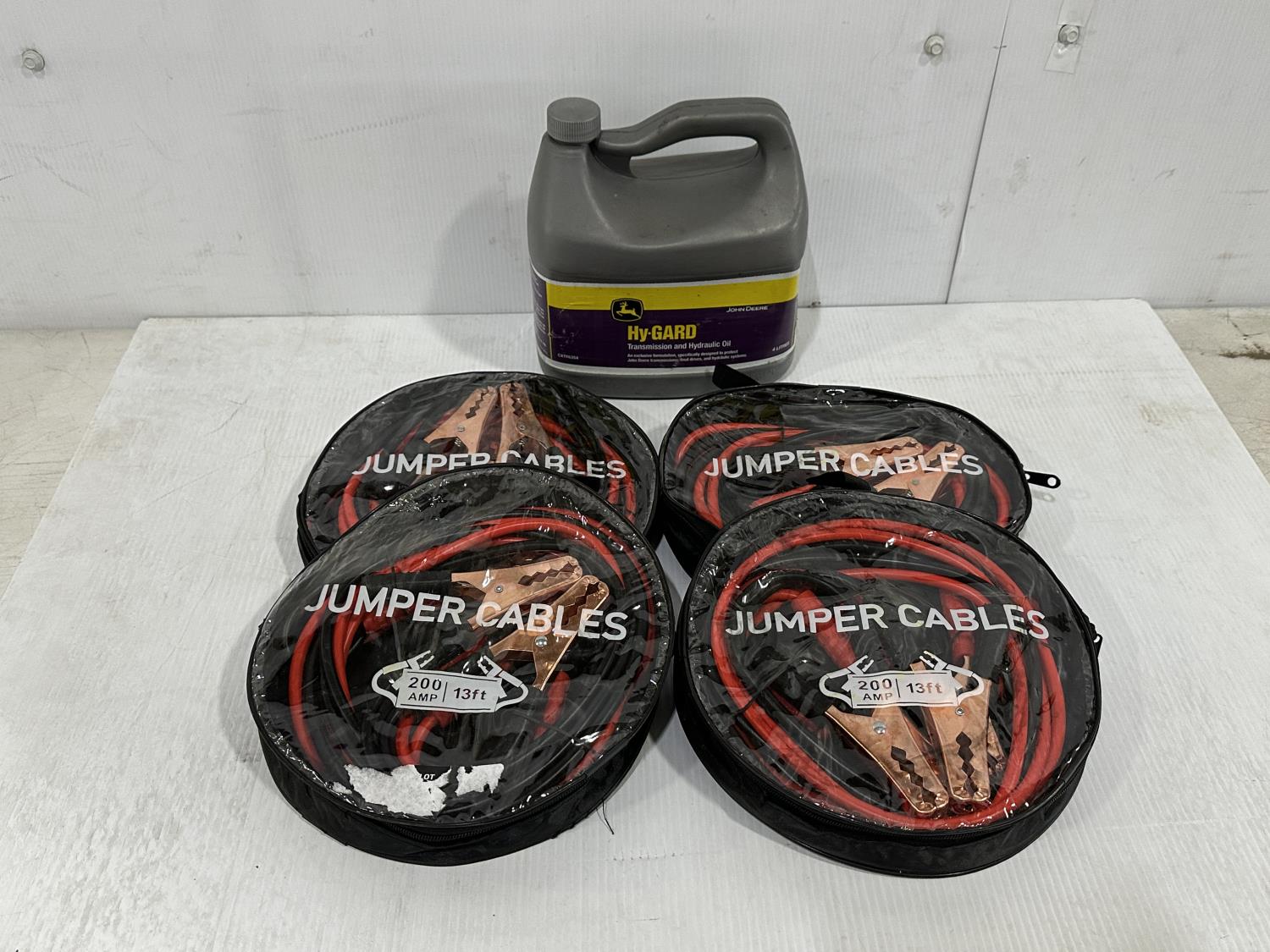 (4) Sets of Booster Cables, and 4L Jug of John Deere Hy-Gard Transmission and Hydraulic Oil