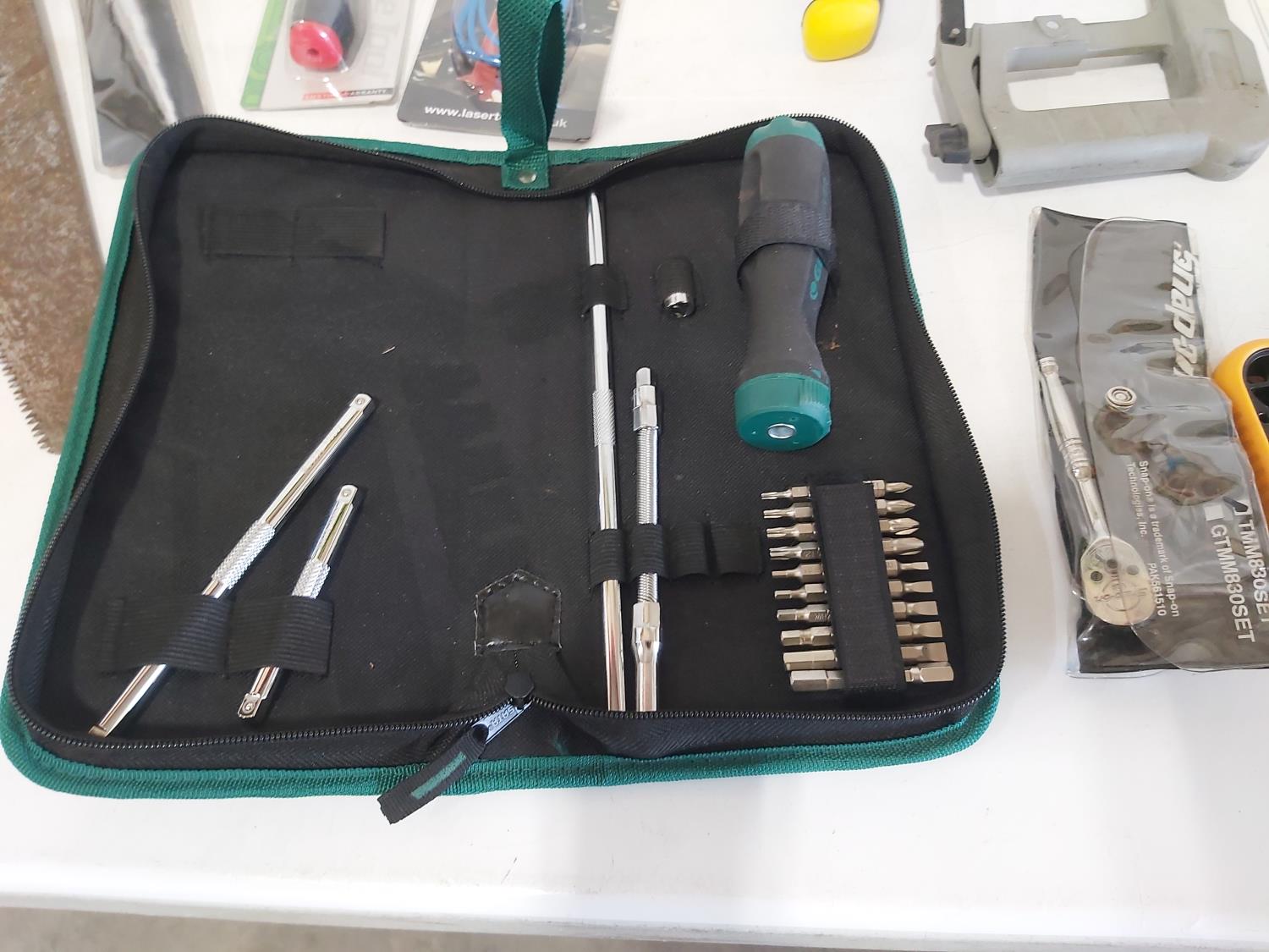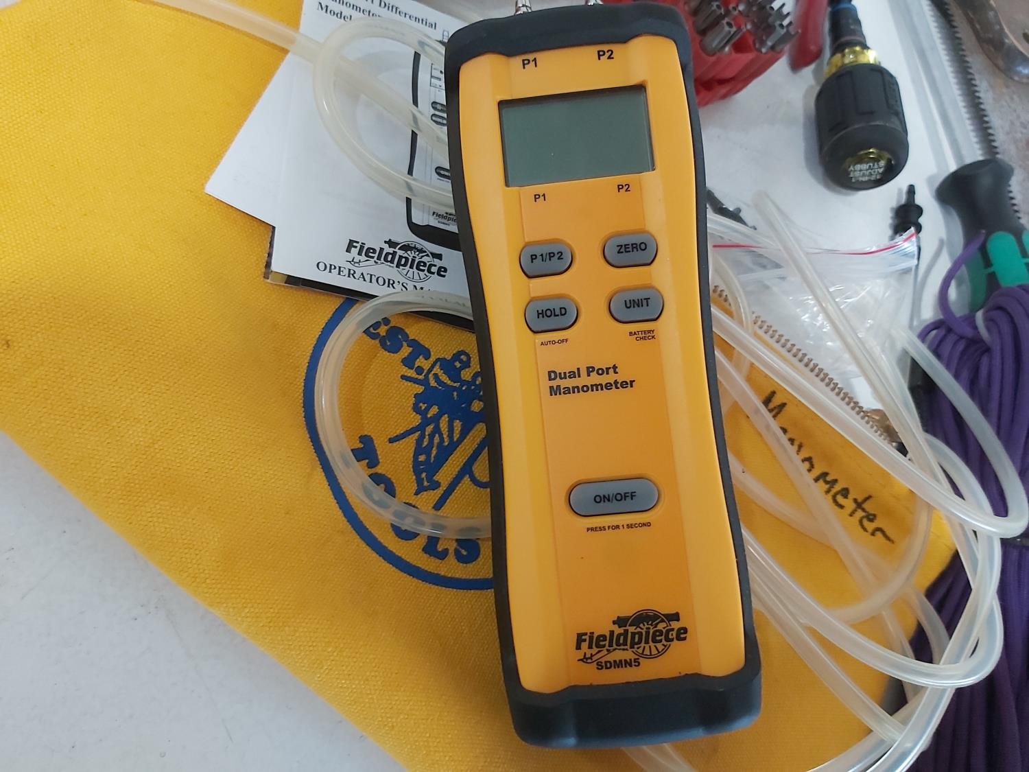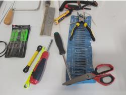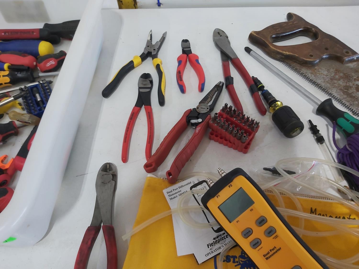 (5) saws, dual port manometer, anemometer, mini clamp meter, screwdrivers, pliers