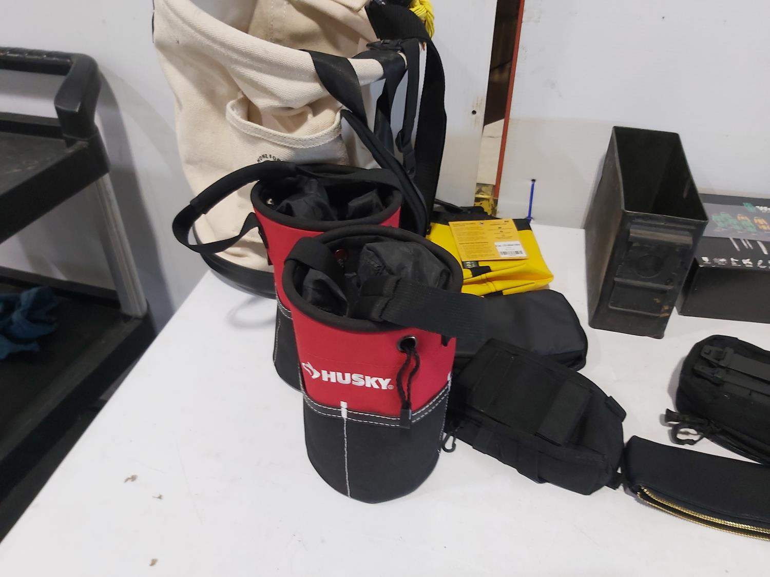 tool bags, screwdrivers, Gear Wrench socket set, hydraulic pressure bleeder, tool organizer