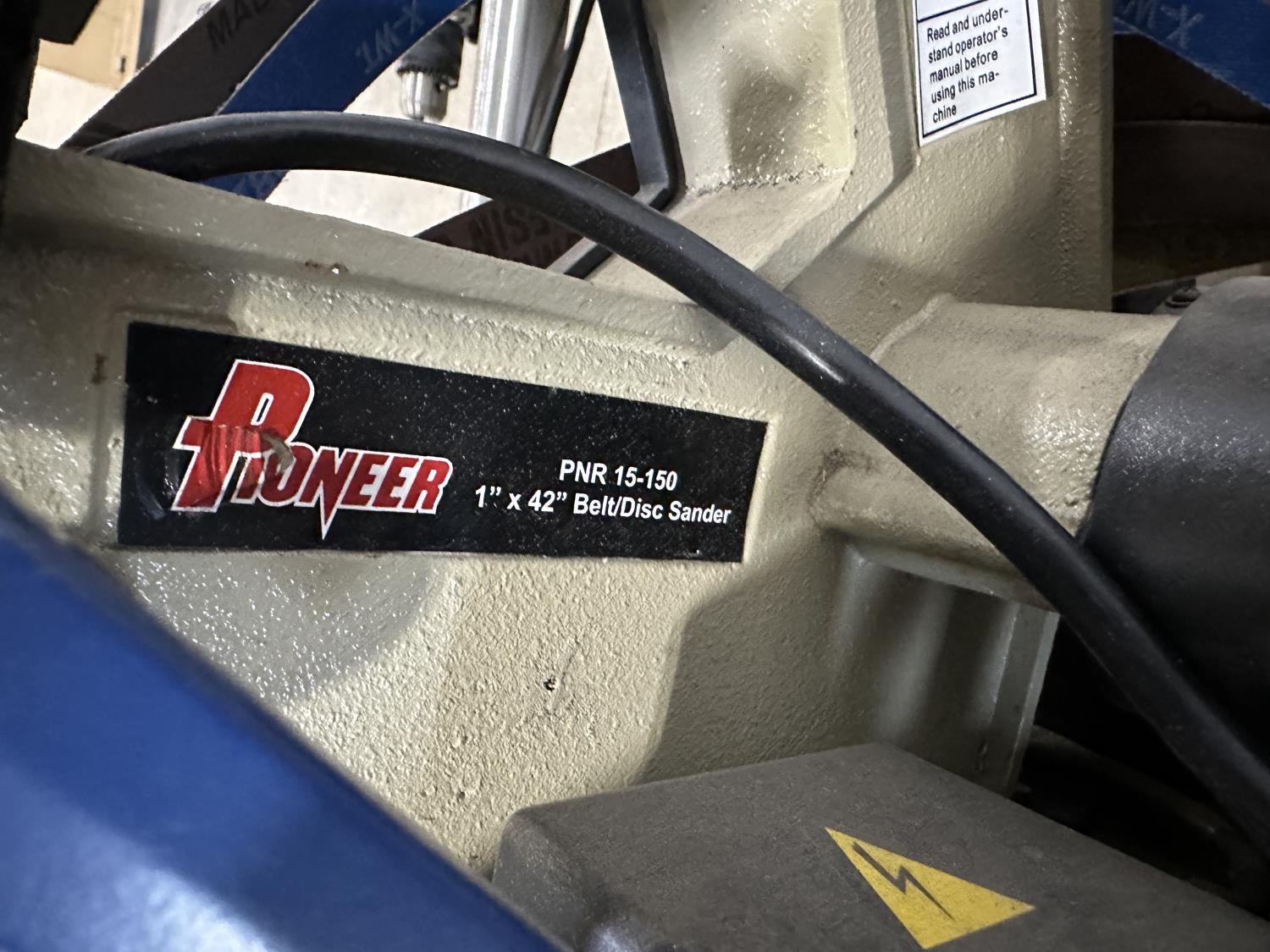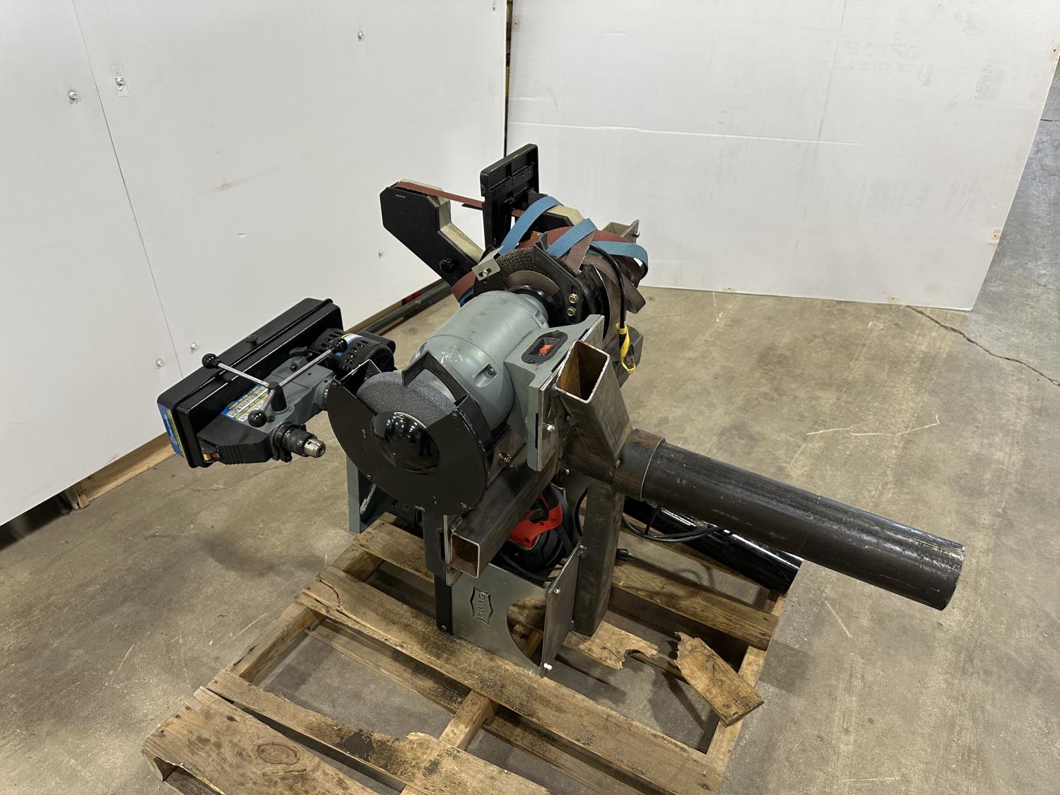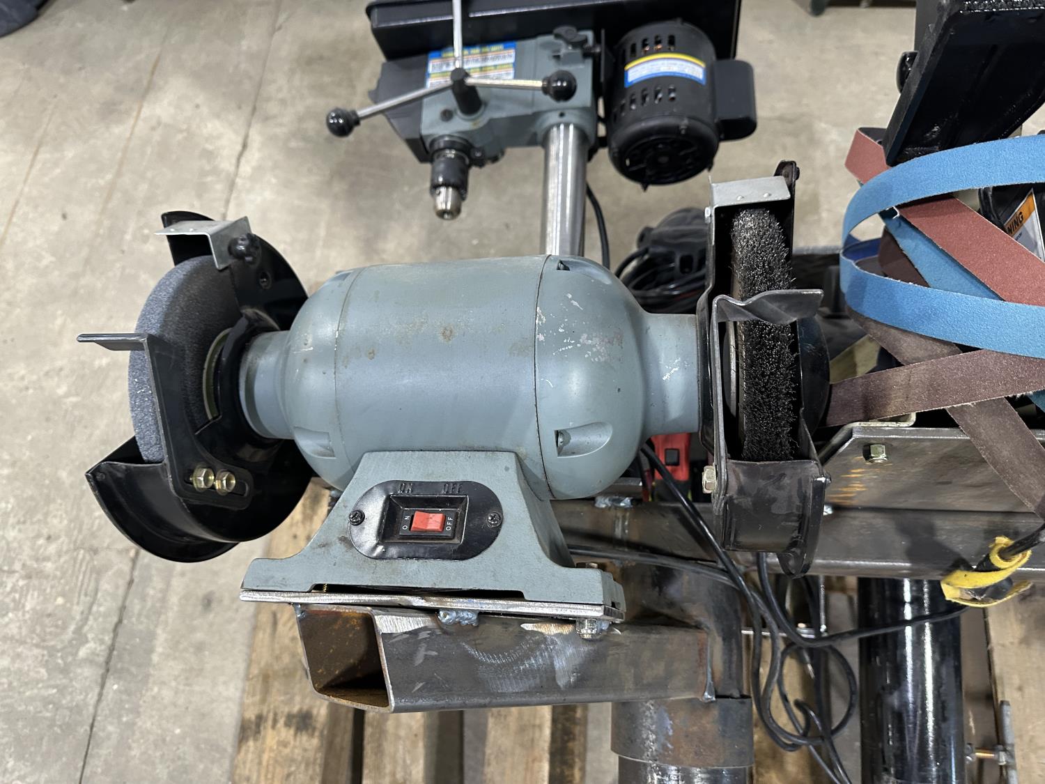 8 inch bench grinder, King Canada 8 inch drill press, Milwaukee deep cut band saw, Pioneer 1 inch x 42 inch belt/disc sander