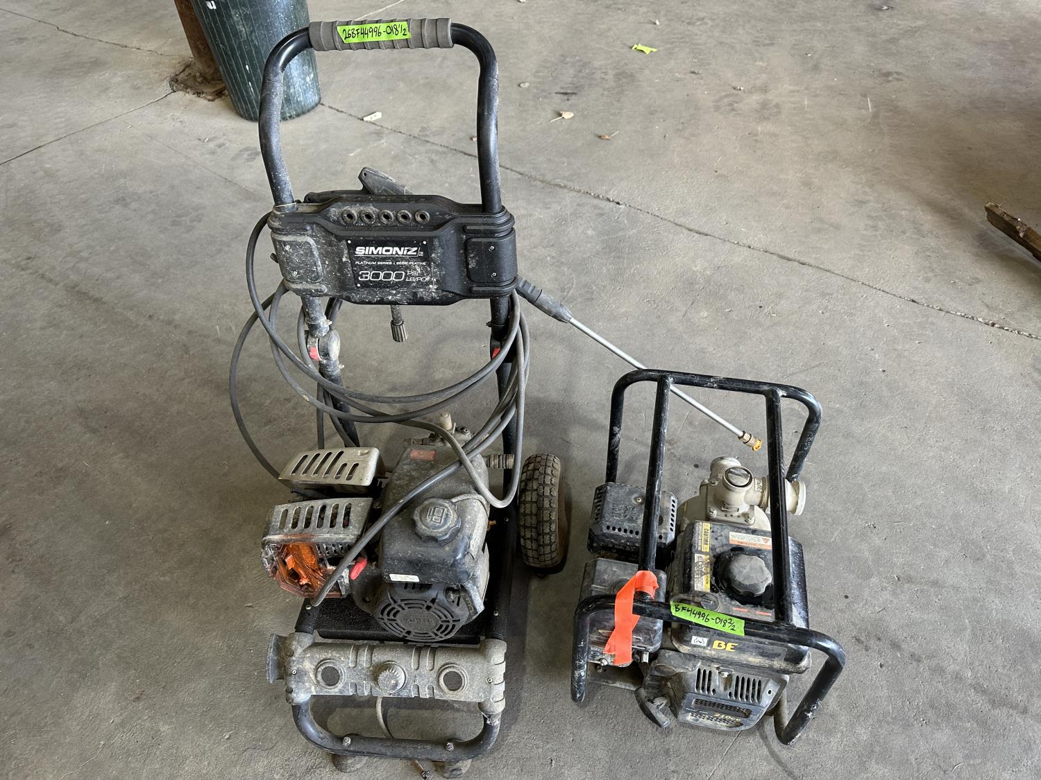 1303 Simoniz 3000Psi Pressure Washer and 2 Inch Water Pump (Inoperable)