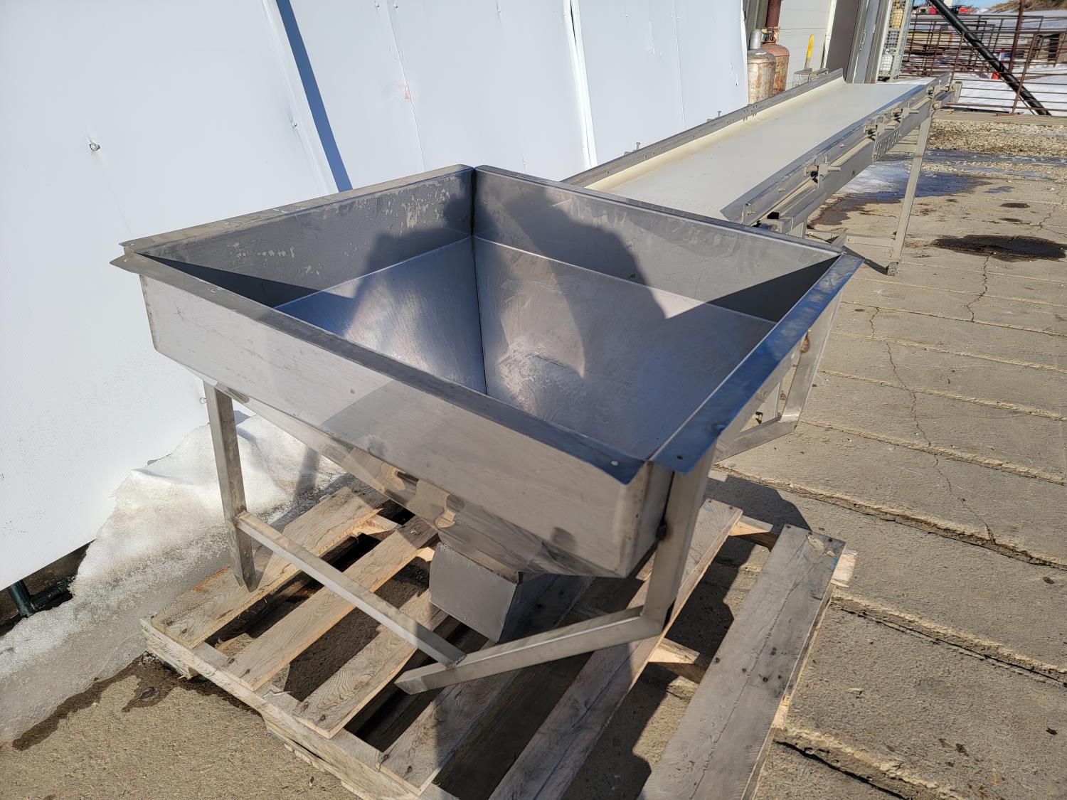 conveyor 21 inch w x 118 inch, hopper 36 inch x 36 inch x 29 inch