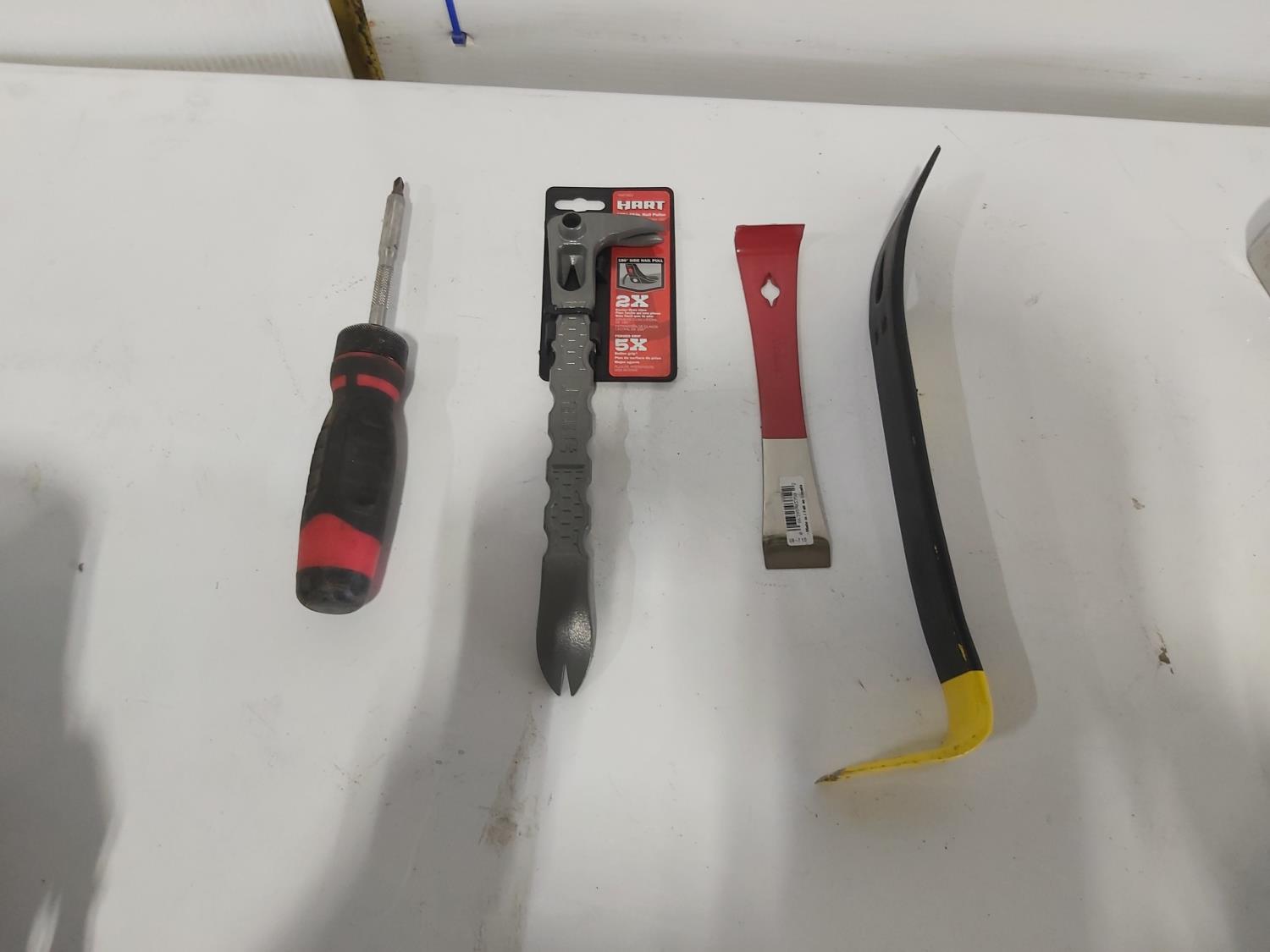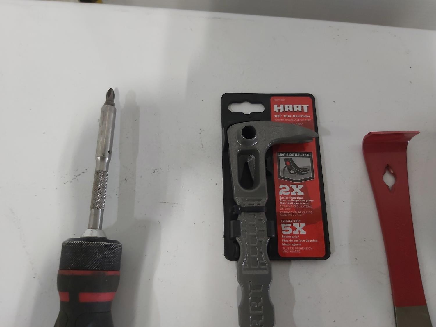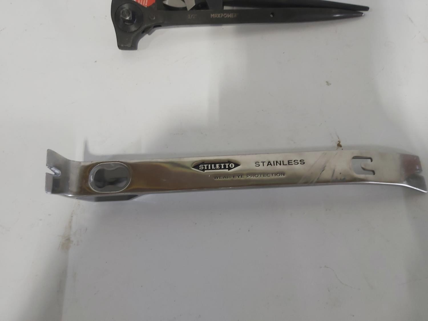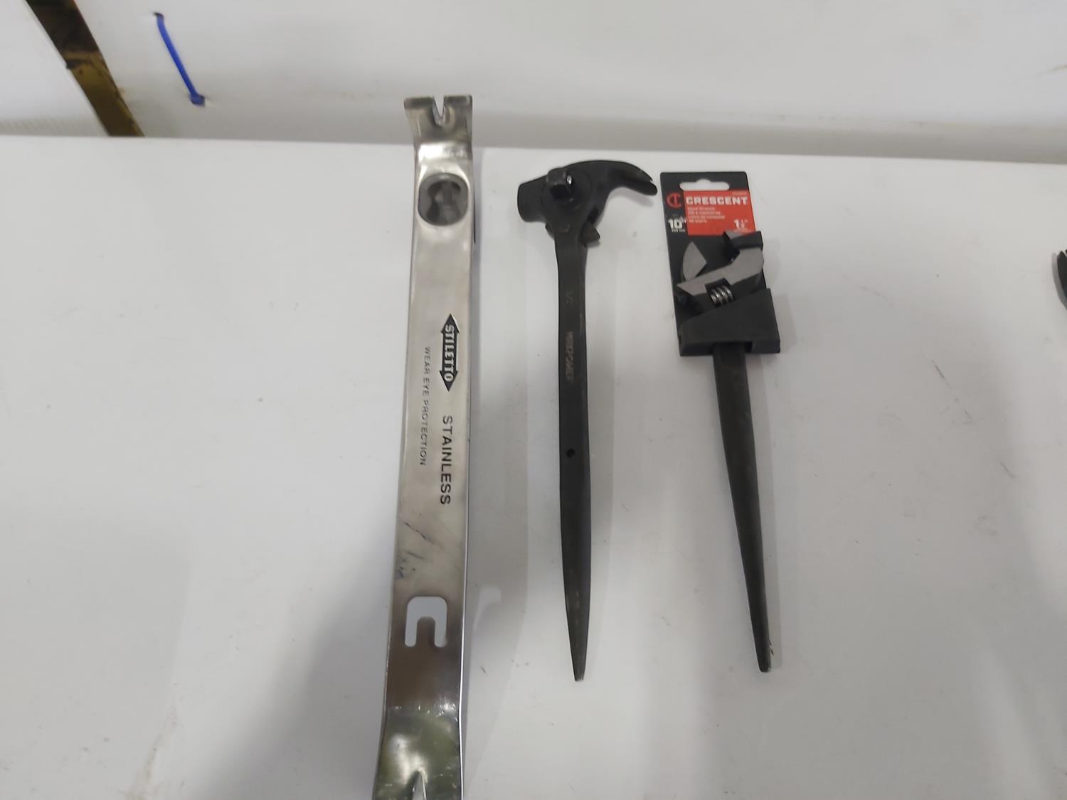 wrenches, sockets, nail pullers, (2) pocket levels, (3) adjustable pliers