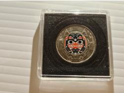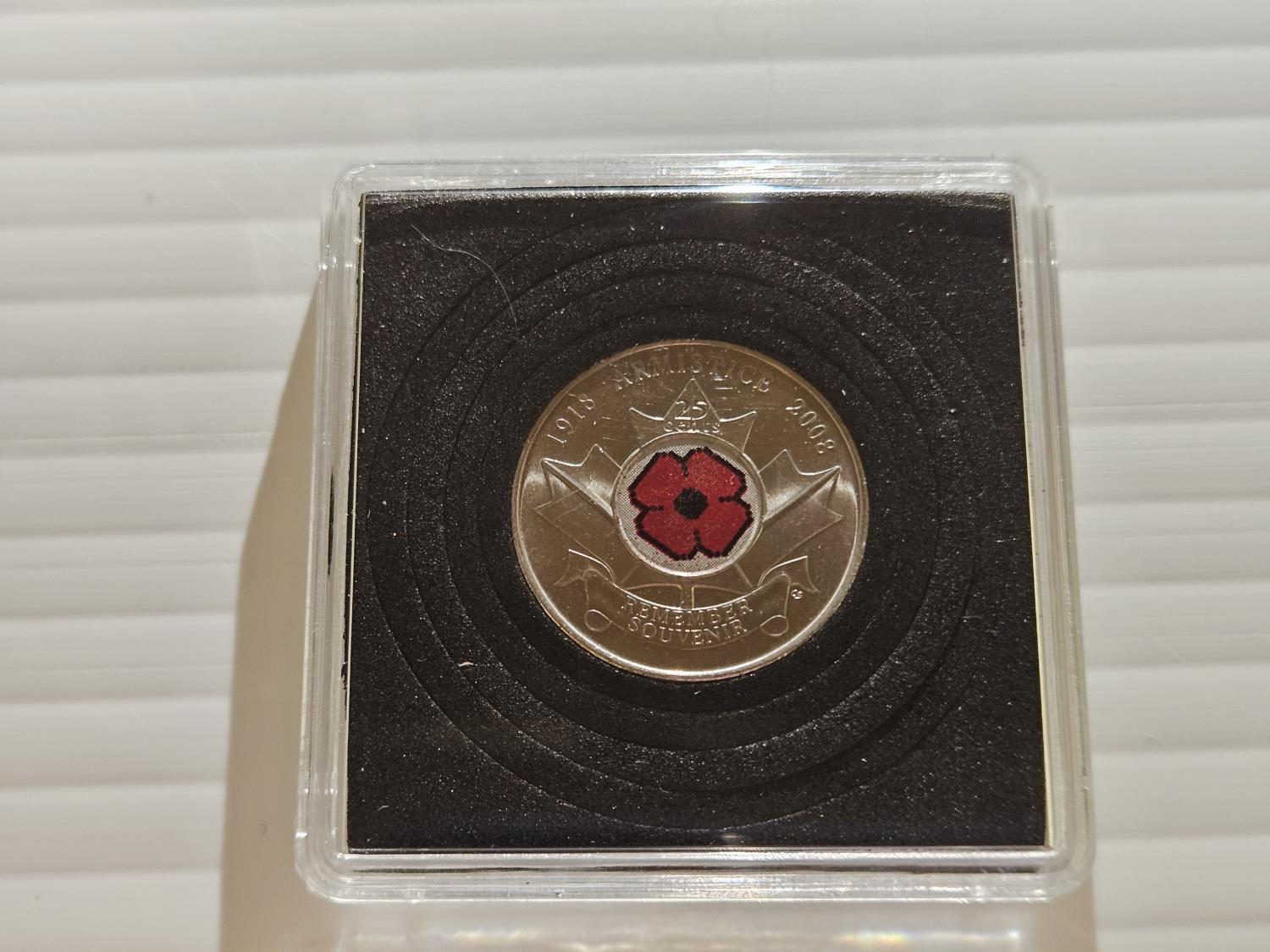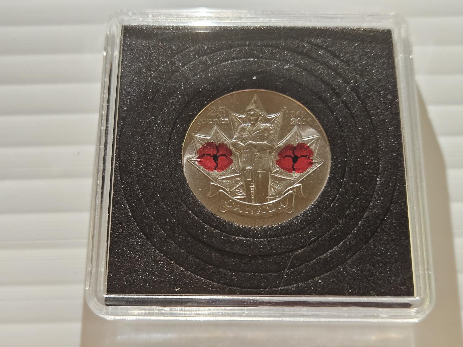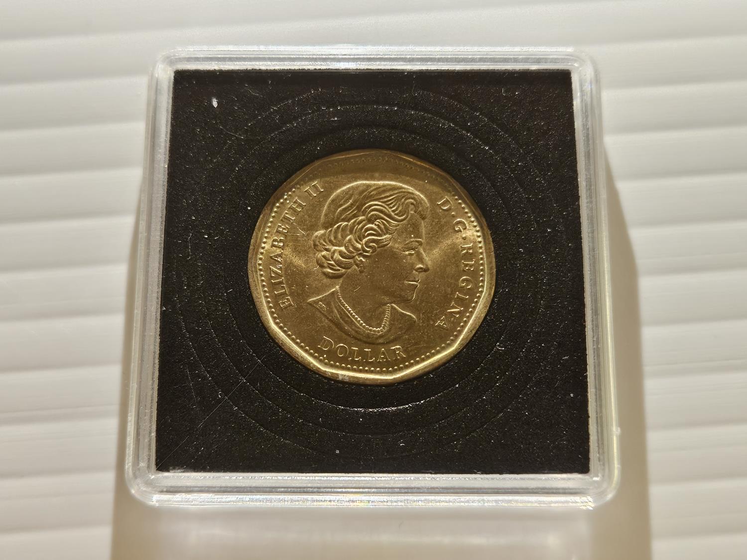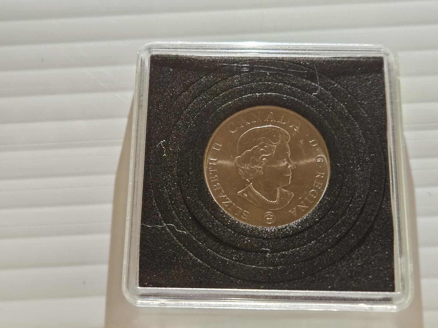 includes (1) large Chinese coin, (6) $1 Canadian coins, (1) $2 Canadian coin, (3) Canadian $0.25 coins, (1) $0.05 Canadian coin