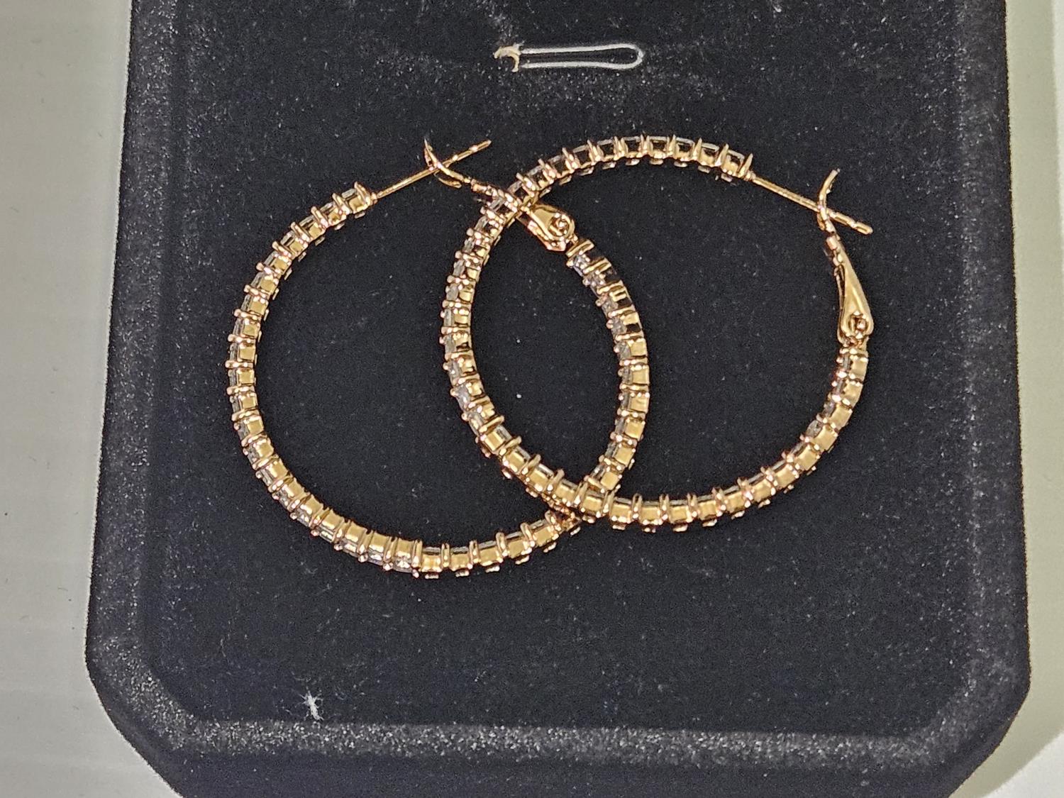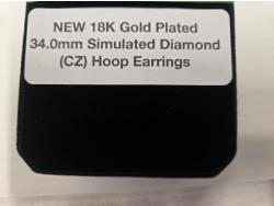 2019 Smartlife 18 K Gold Plated 34.0 mm Simulated Diamond Hoop Earrings (Unused)