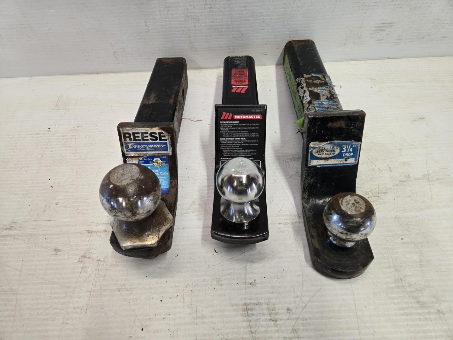 (2) with 2 inch balls, (1) 2-5/16 ball