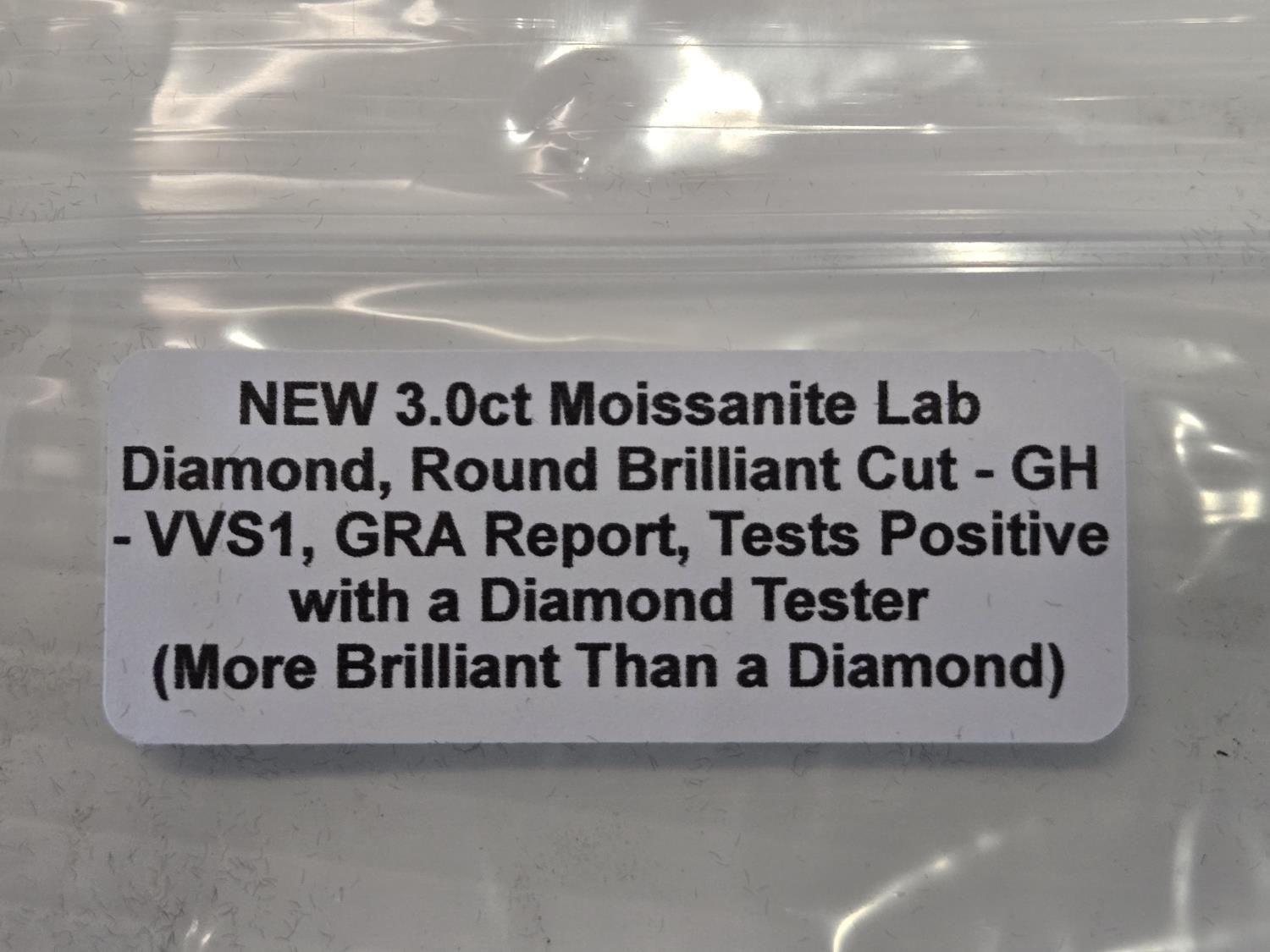 2005 Smartlife 3.0 Ct Moissanite Lab Diamond, Round Brillant Cut 9.0 mm (Unused)