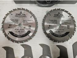 set includes (2) 8 inch 24 tooth blades, (4) 1/8 inch chippers, (1) 1/16 inch chipper
