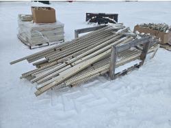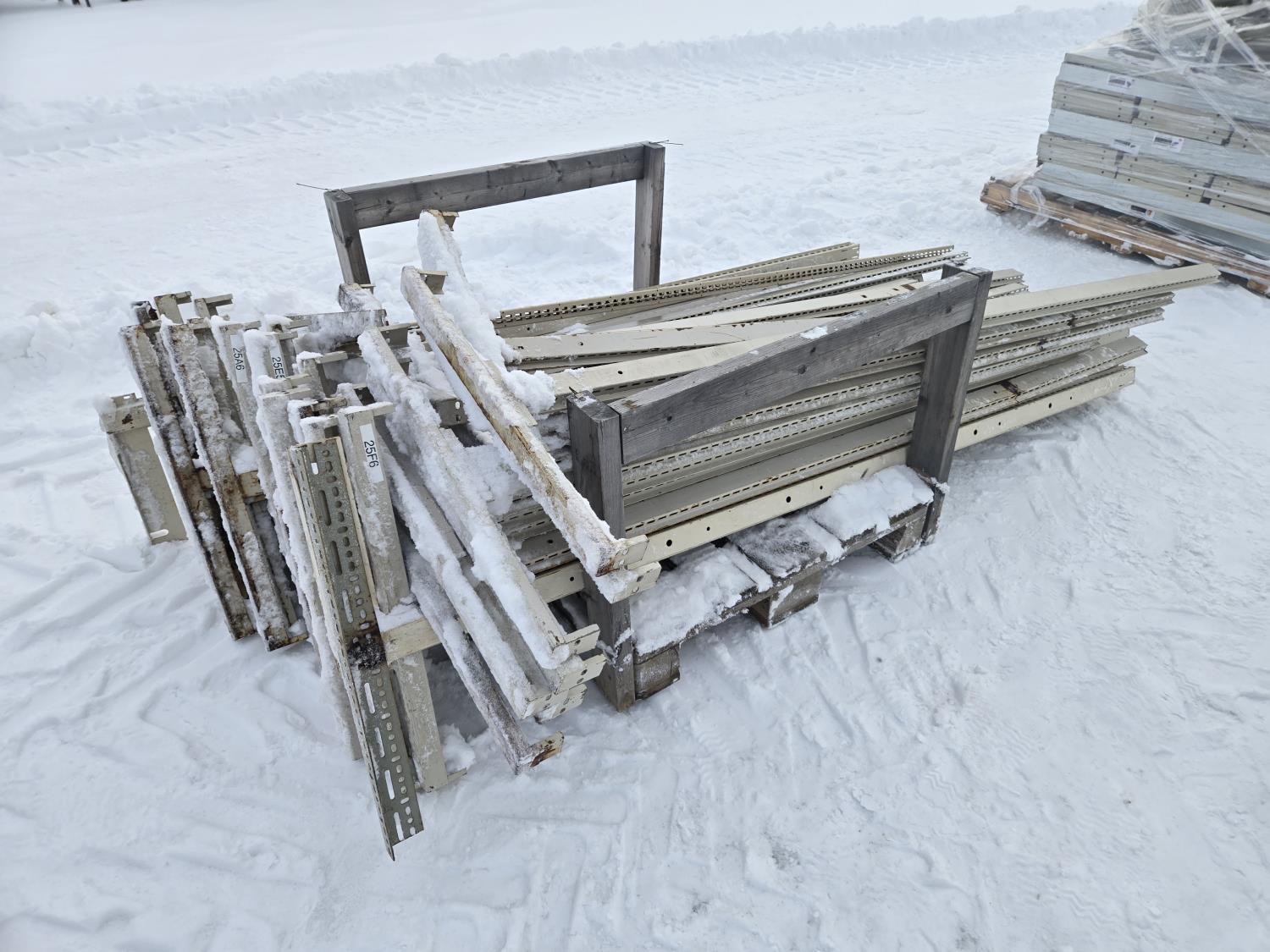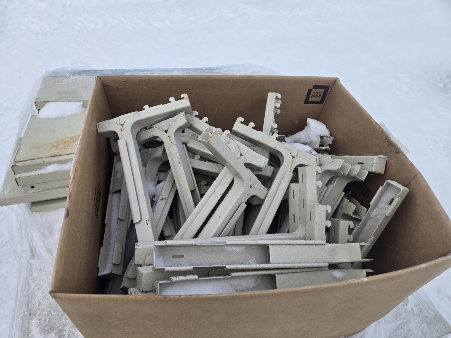 (32±) approximately 84 inch double sided posts, large qty of 12 inch X 30 inch metal shelves, large qty of shelving brackets