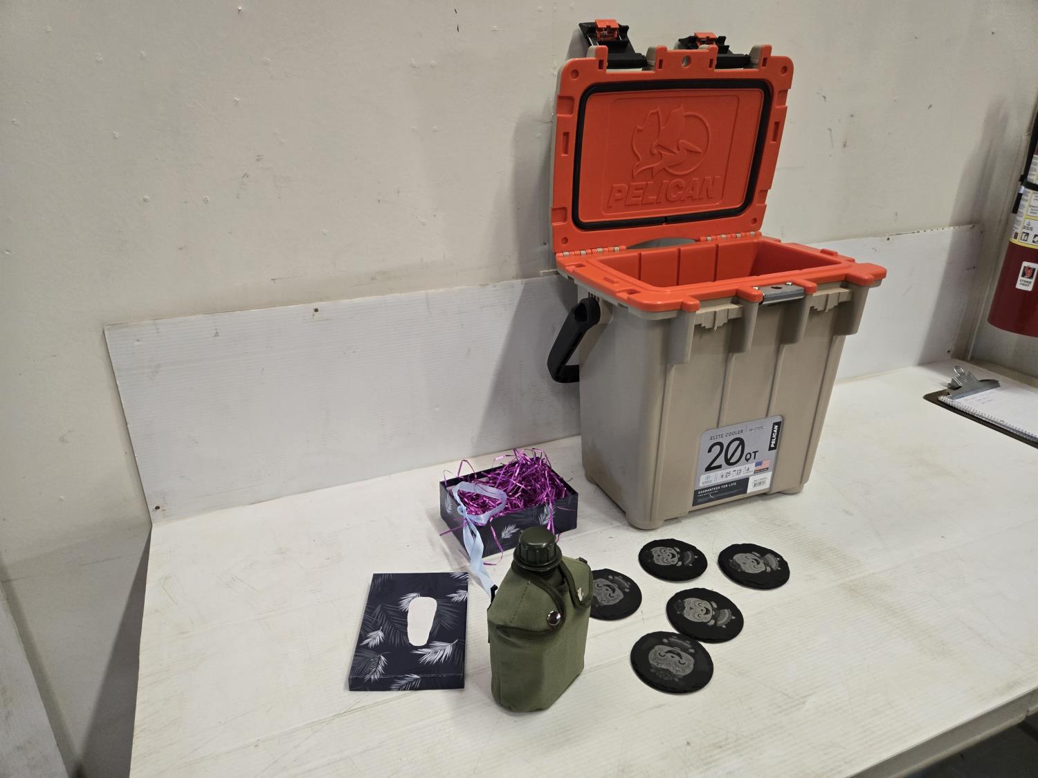 2102 Pelican 20 Qt Cooler, (5) Coasters & Canteen